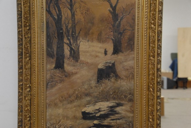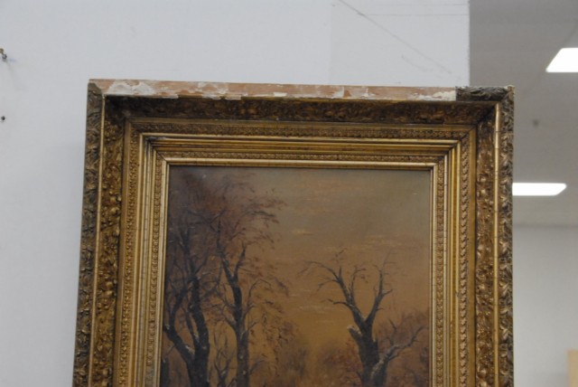 Oil on canvas, winter landscape, Victorian frame, frame chipped