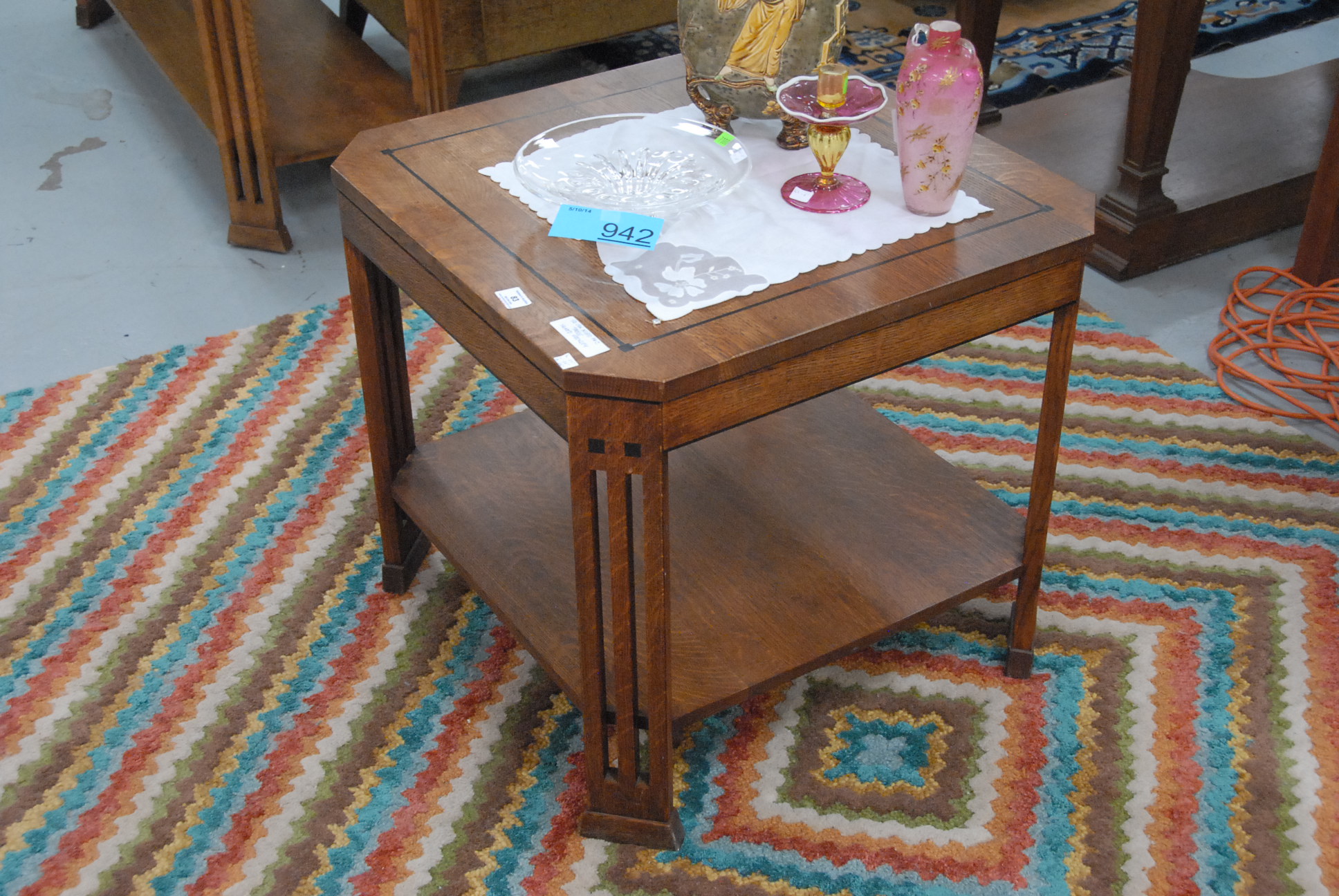 Stickley inlaid oak side table, ht. 24in. top: 26 x 26.