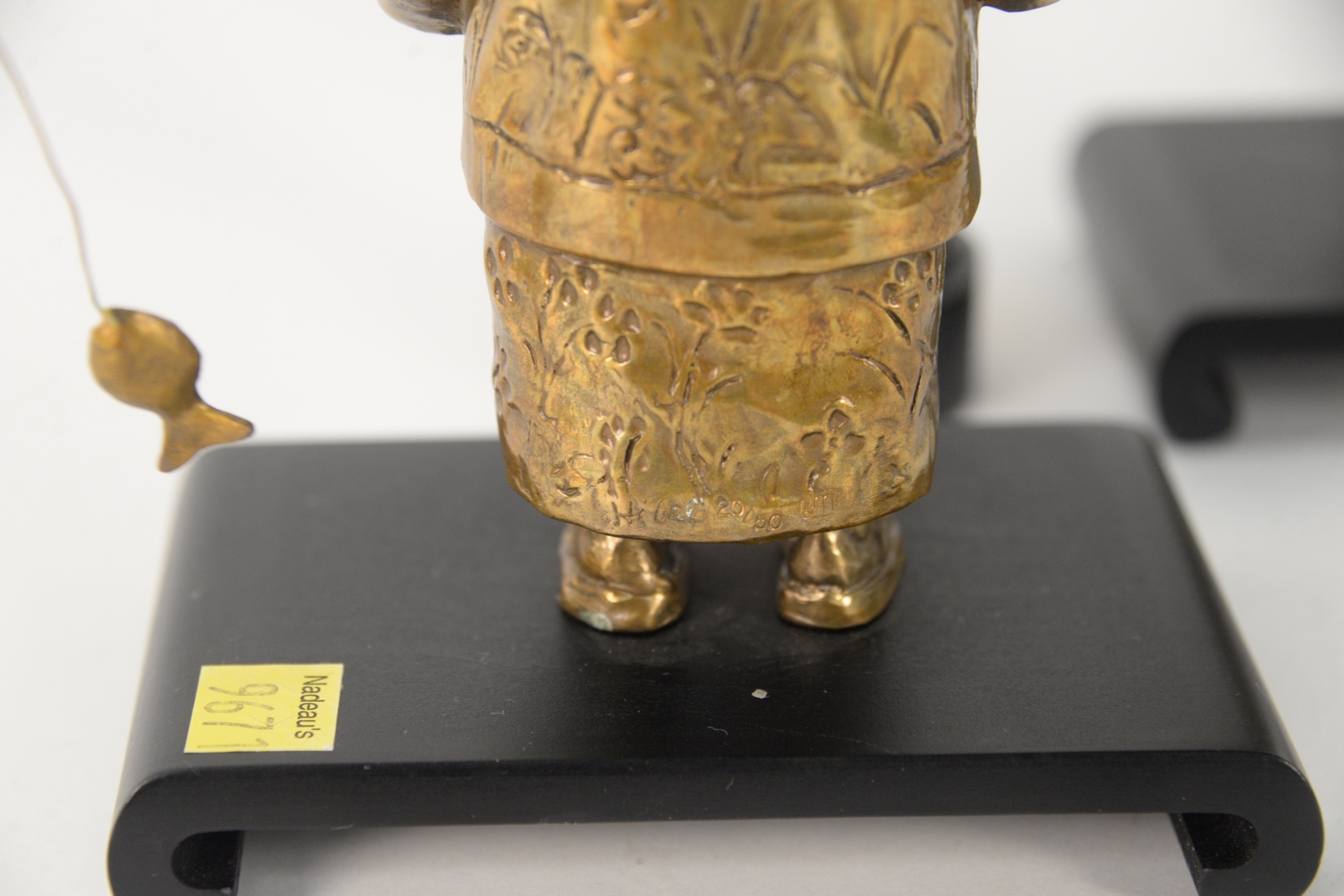 Lot 83: Three Piece Group of Edna Hibel Gold Patinated Bronzes, to include children in Japanese robes, each inscribed along the lower edge, overall height 9 inches.