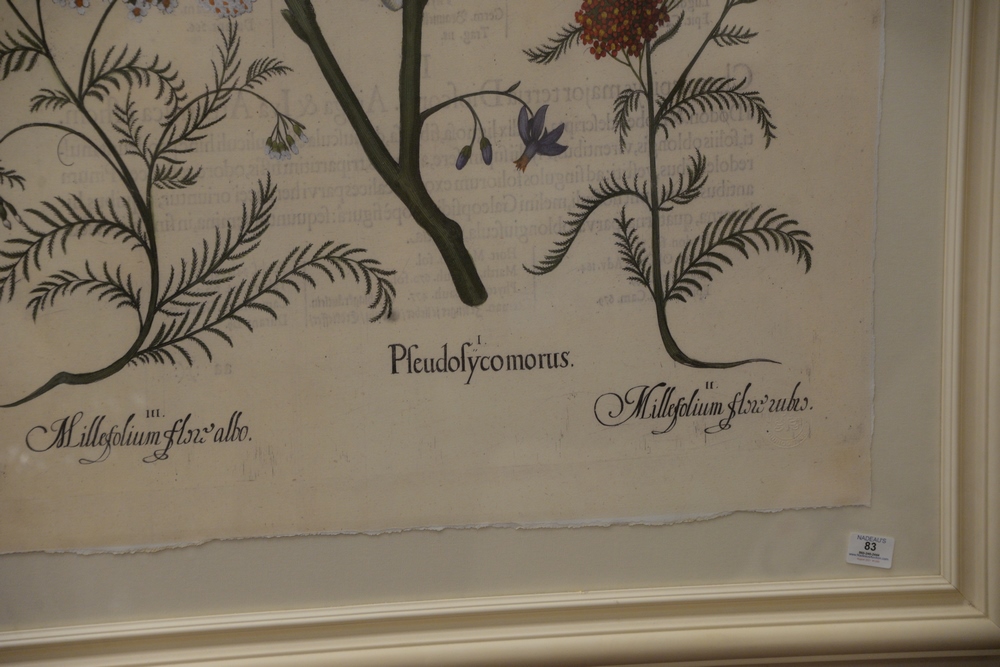 Lot 83: Two piece lot to include an After Basilius Besler (German, 1561-1629), “Pfeudofy Comorus” , oversized digital botanical print, sheet…