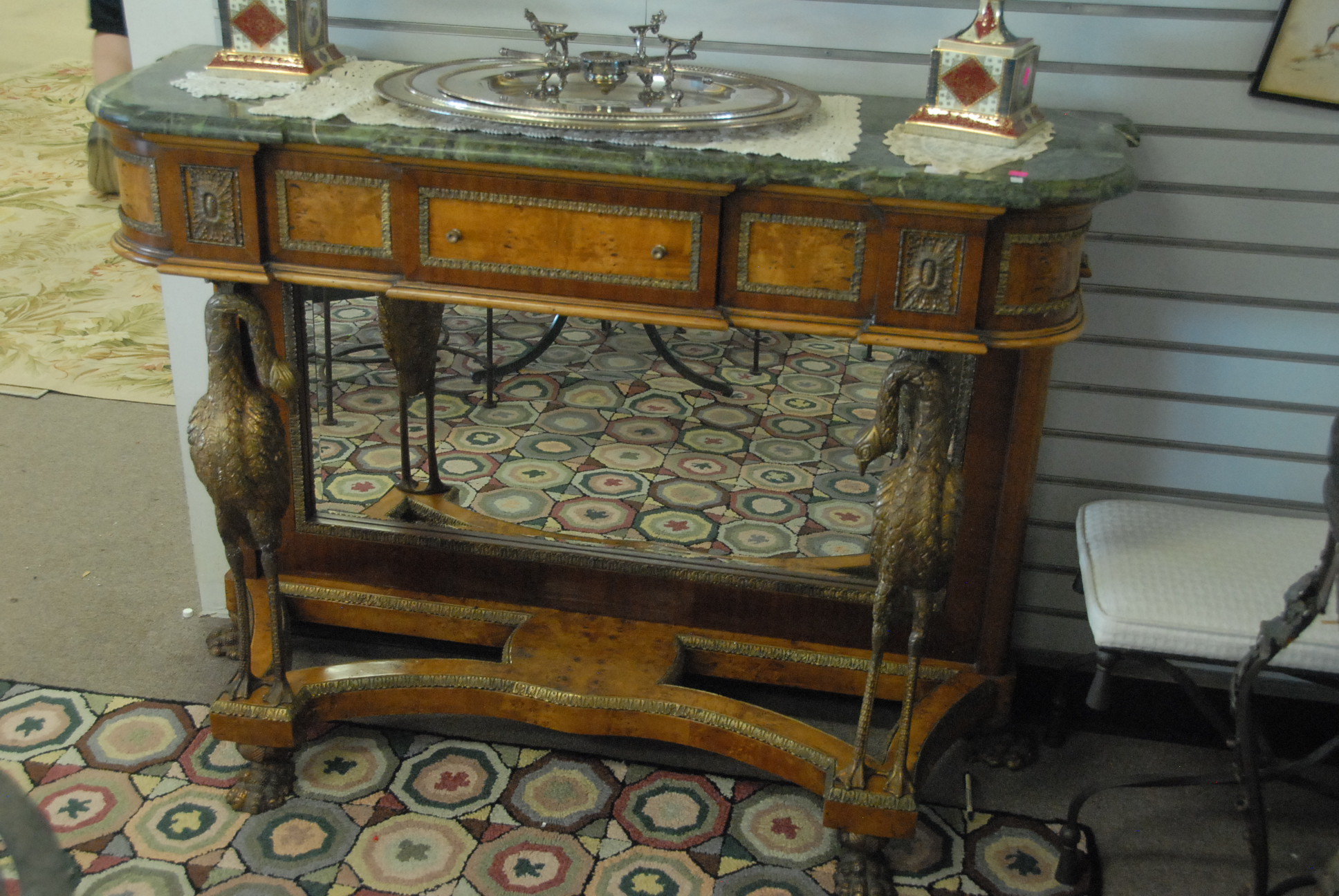 Continental style marble top server/hall table. ht. 39 in. lg. 54 in. dp. 18 in.