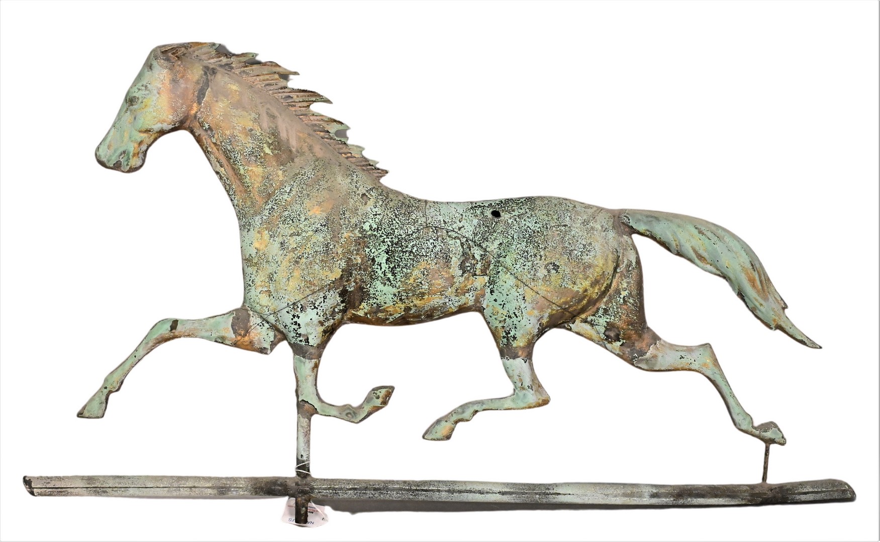 Lot 84: Full Bodied Copper Weathervane of Trotting Horse