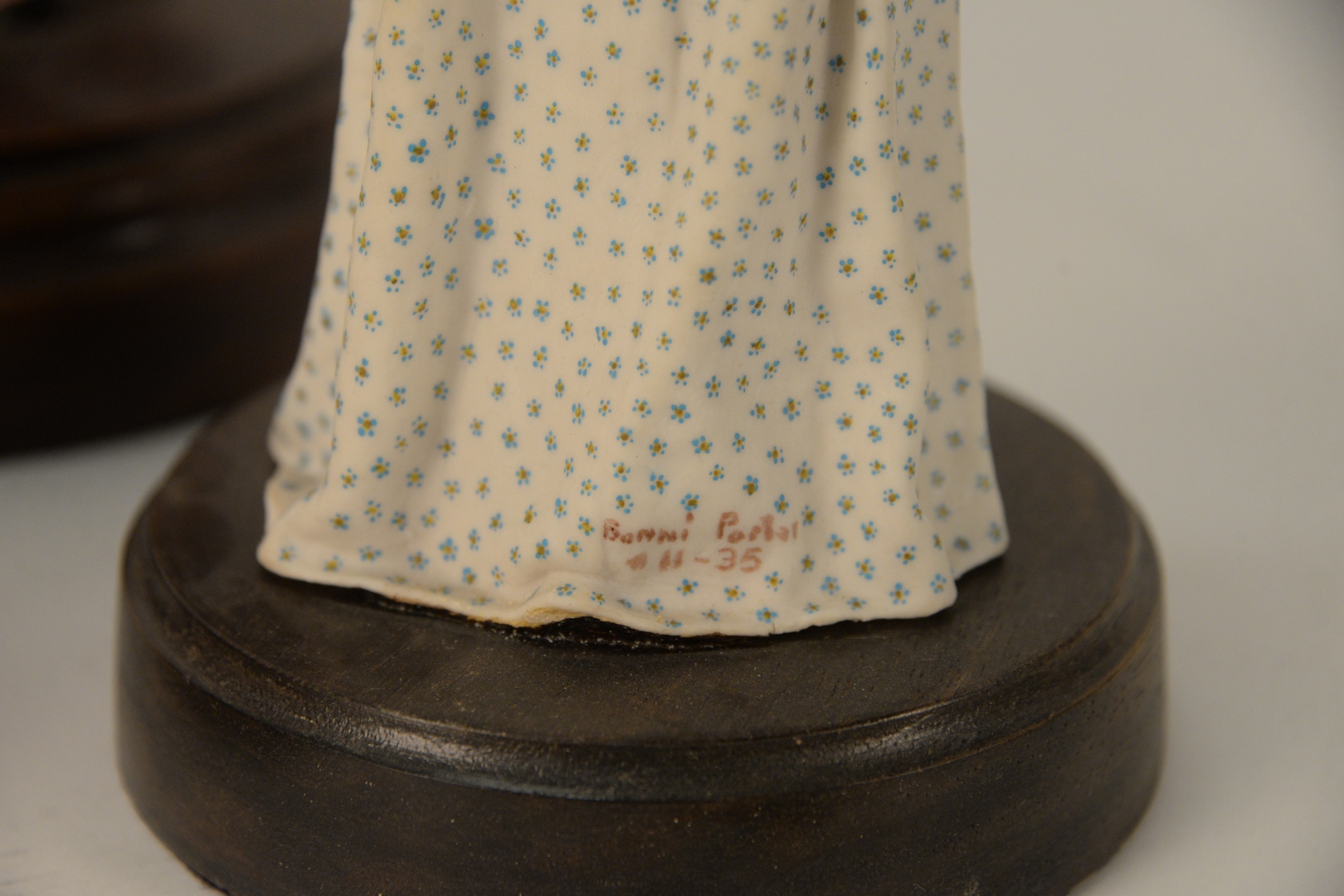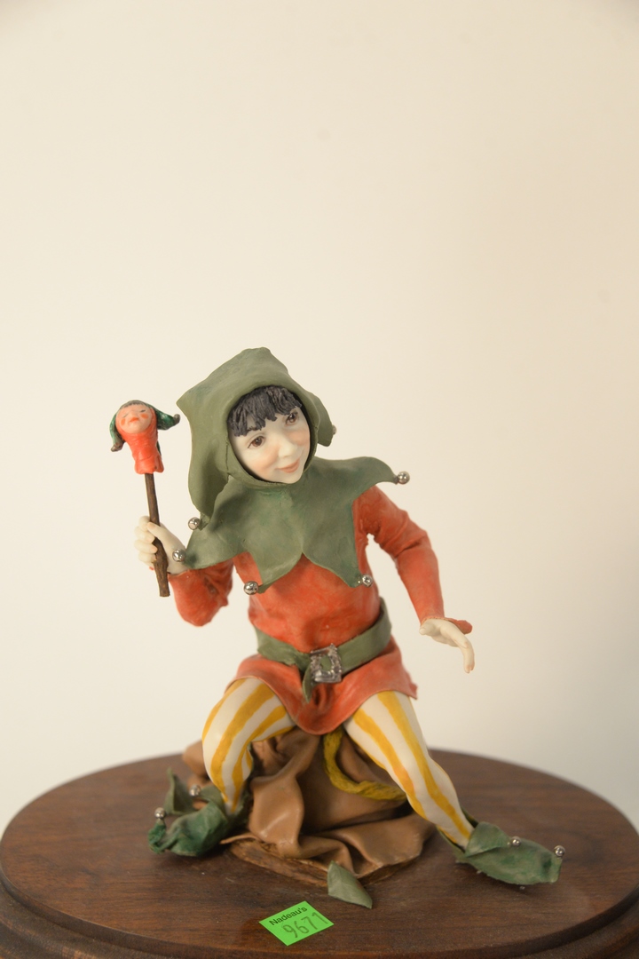 Lot 84: Group of Four Bonni Porter Porcelains, to include a ballerina; two little girls with a lamb; and a doll; along with a jester; three signed, (jester and ballerina with broken pieces), tallest 13 inches.