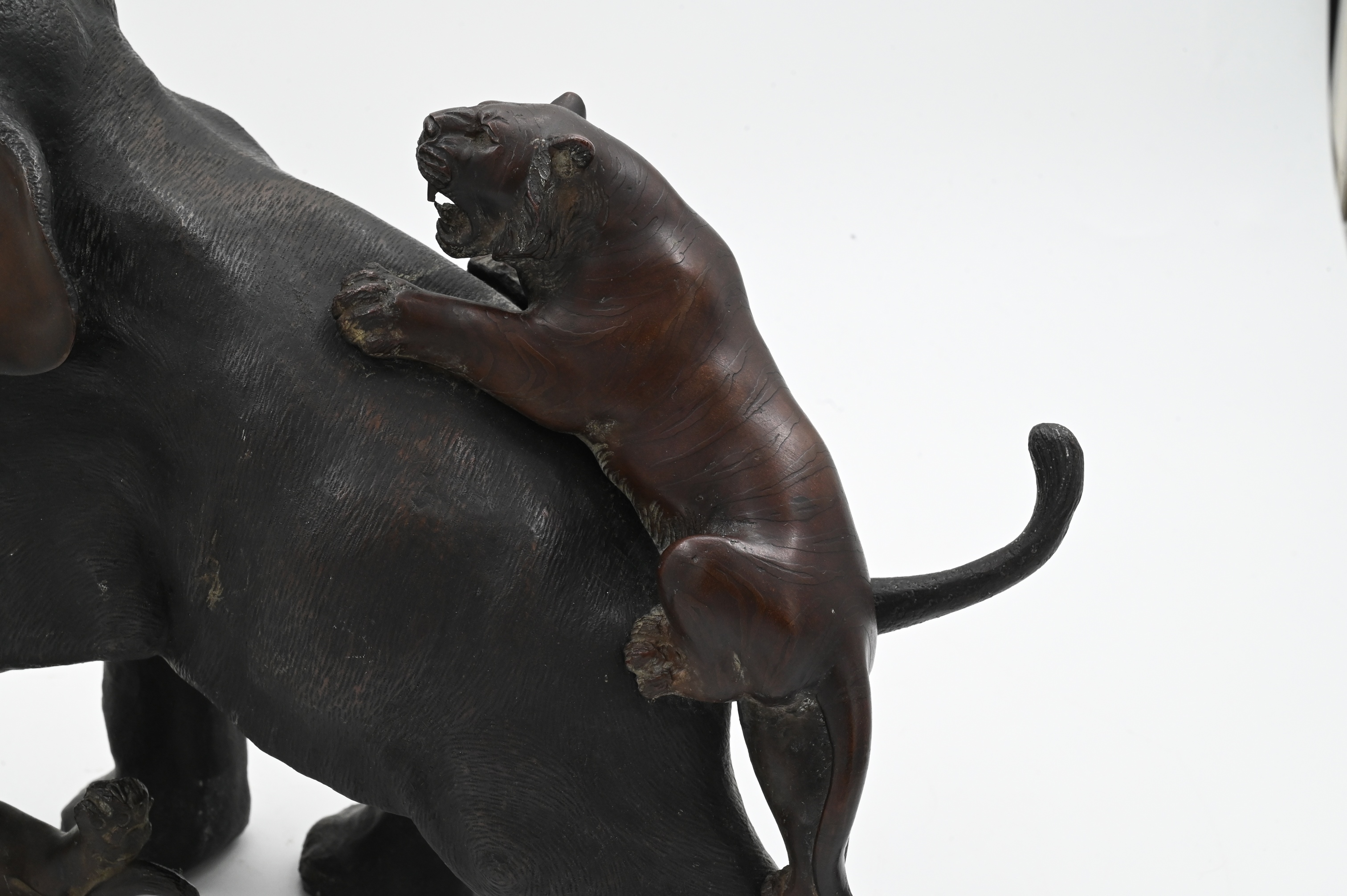 Lot 84: Japanese Meiji Period Bronze Okimono Elephant Figured Group