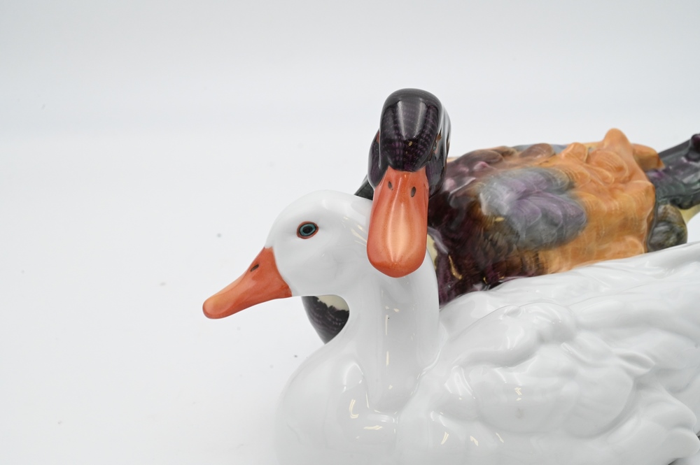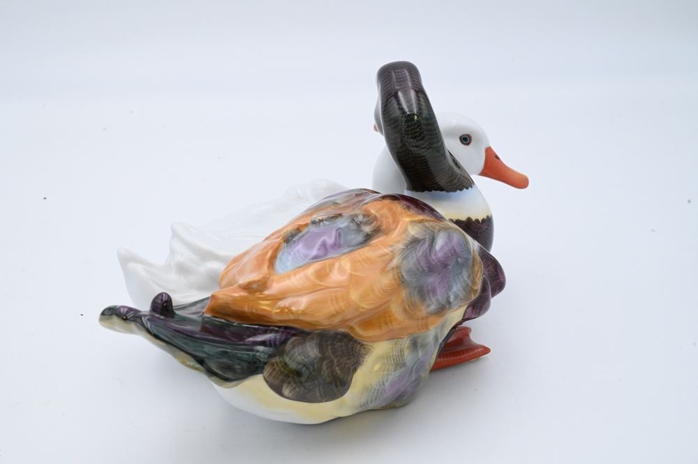 Large Herend Duck Figureal Group, depicting two ducks cuddling, marked Herend on bottom, height 5 1/2 inches, length 10 1/2 inches.