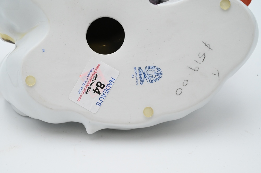 Lot 84: Large Herend Duck Figureal Group, depicting two ducks cuddling, marked Herend on bottom, height 5 1/2 inches, length 10 1/2 inches.