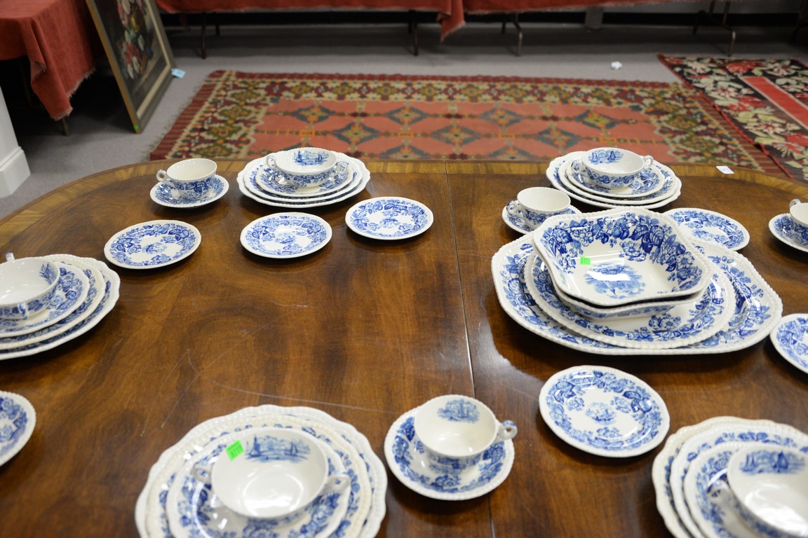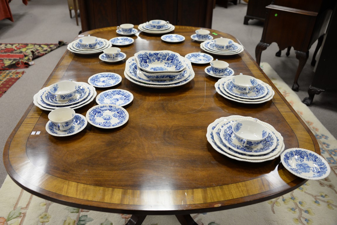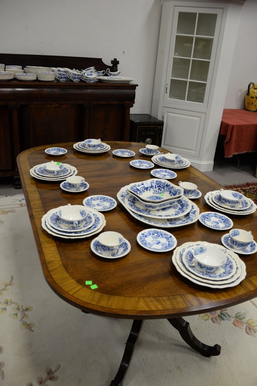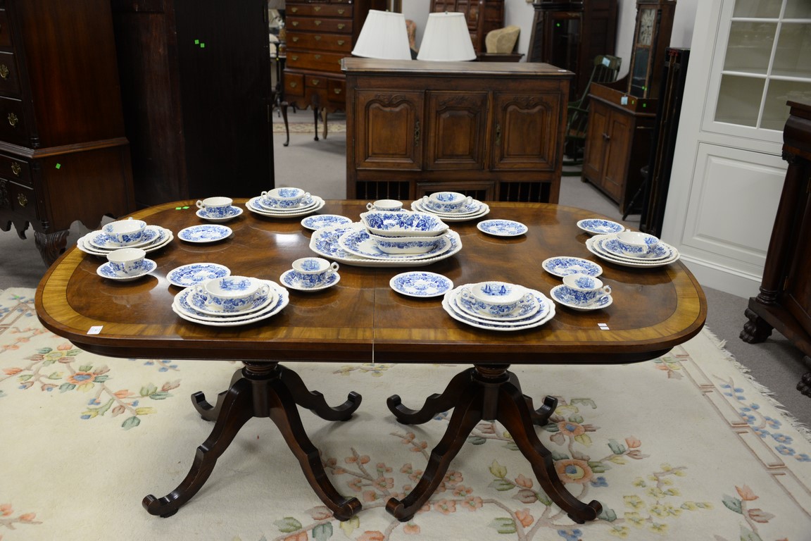 Mahogany double pedestal dining table with three 23 leaves. top: 45 x 71, open: 45 x 140