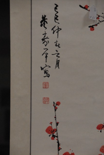 Lot 84: Oriental scroll of a blossoming tree, red black