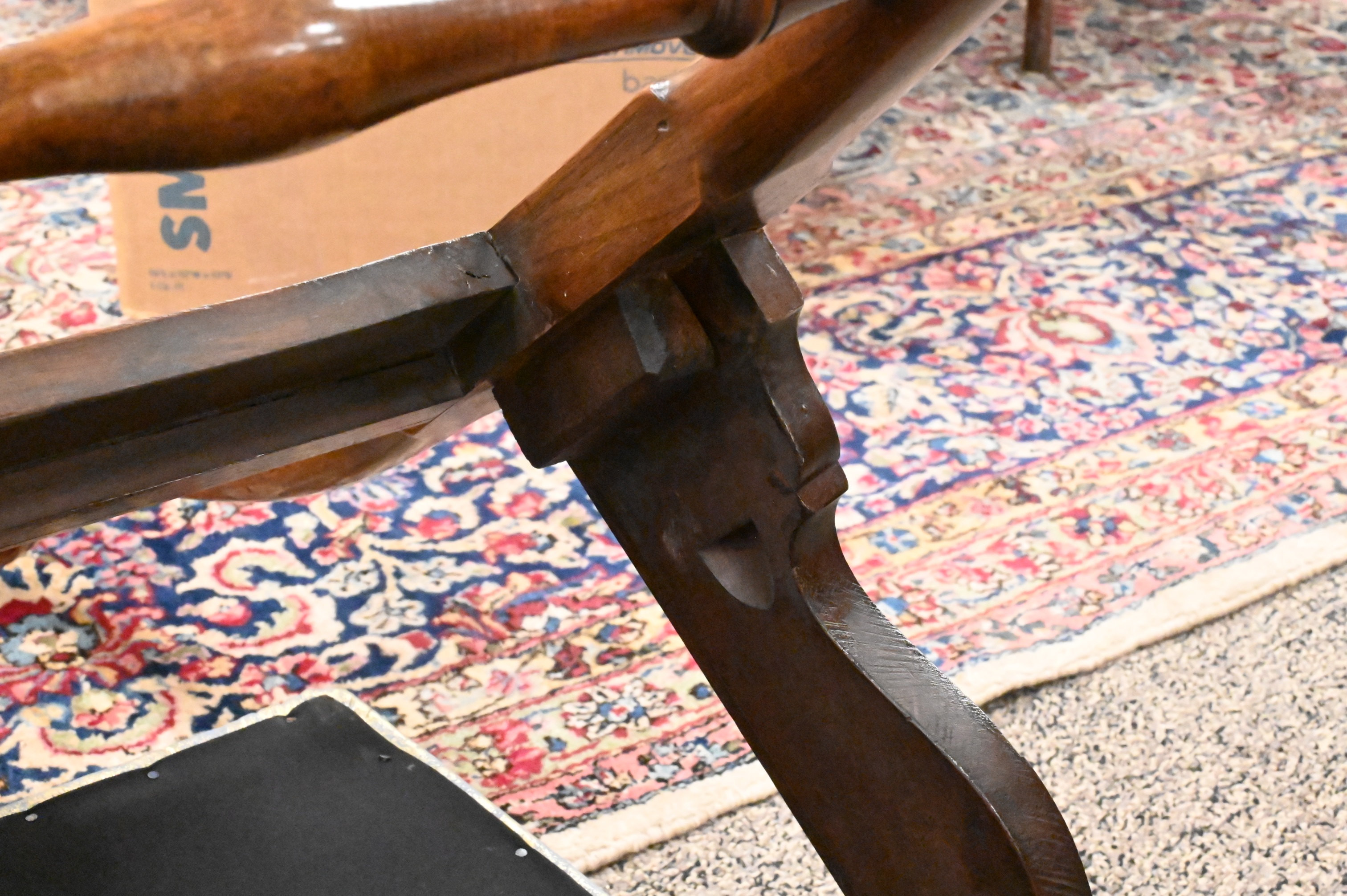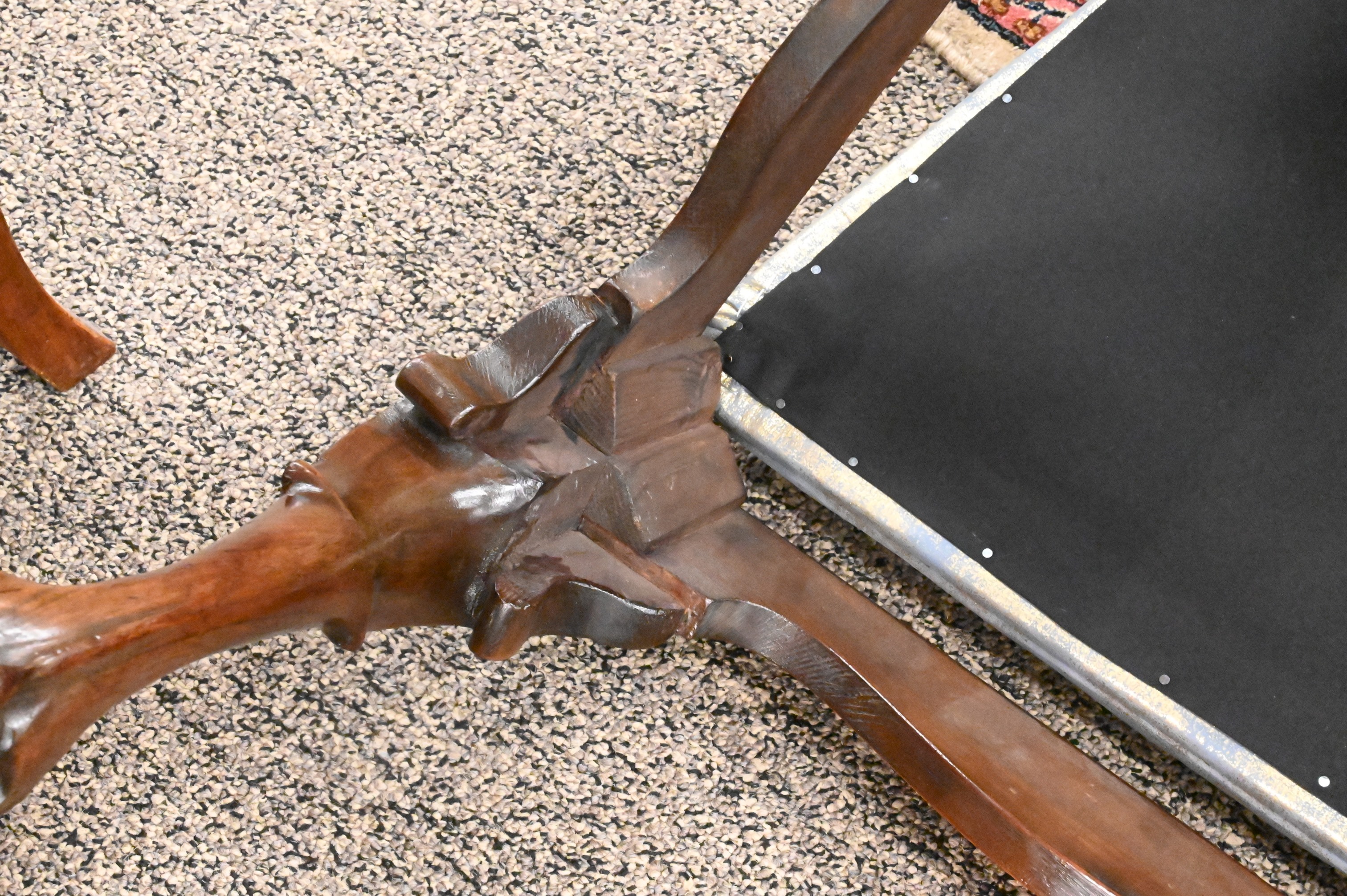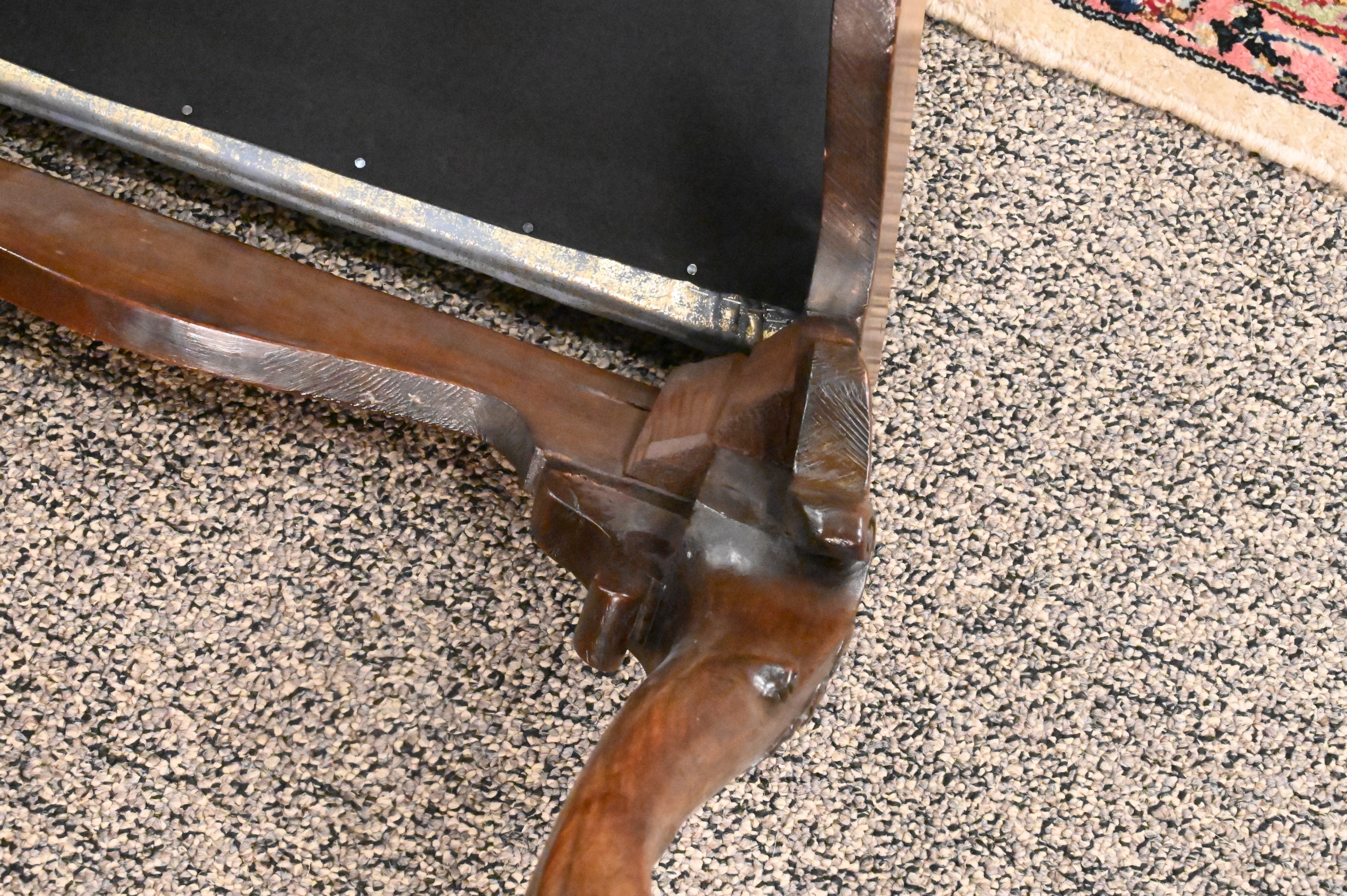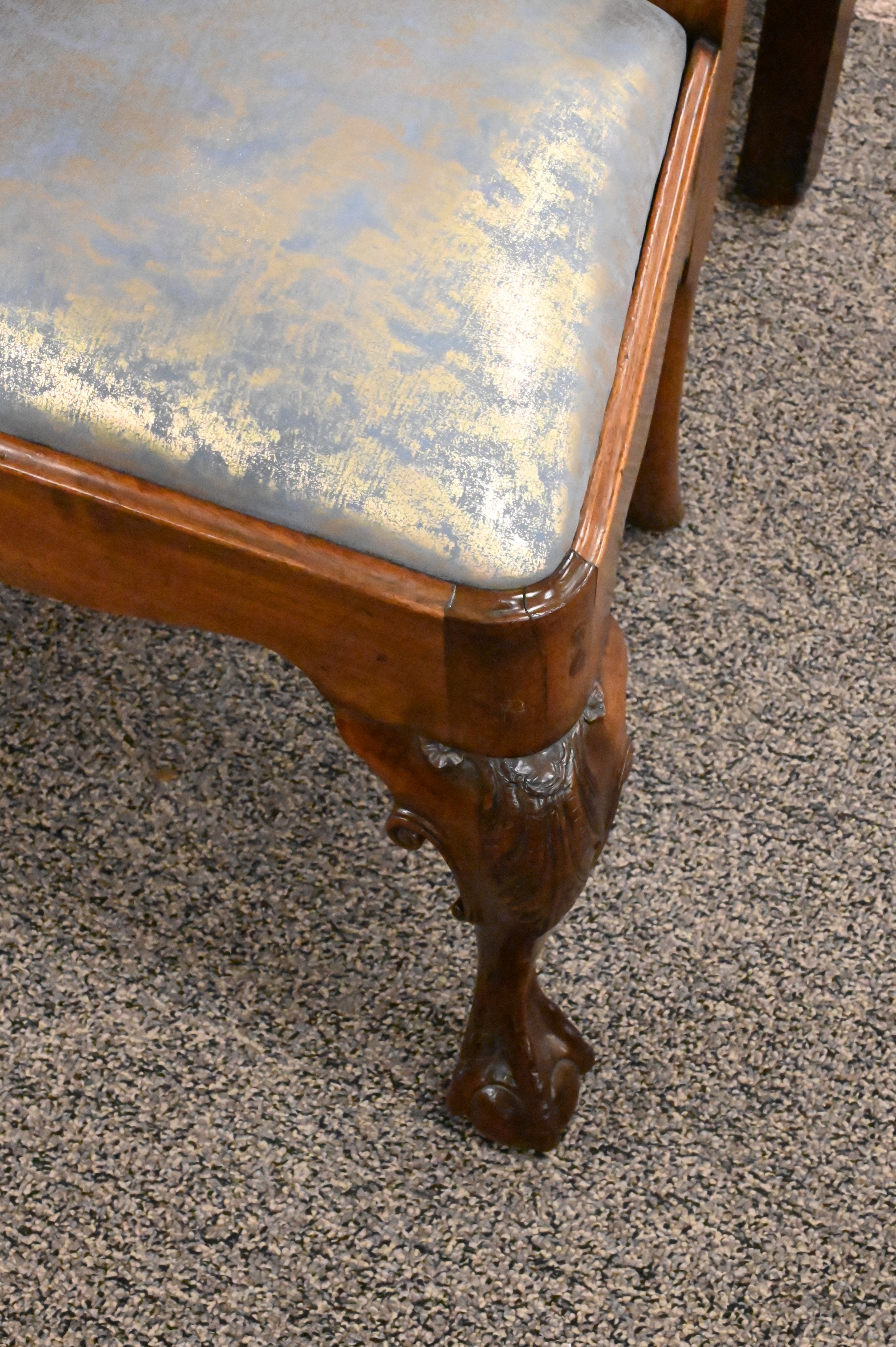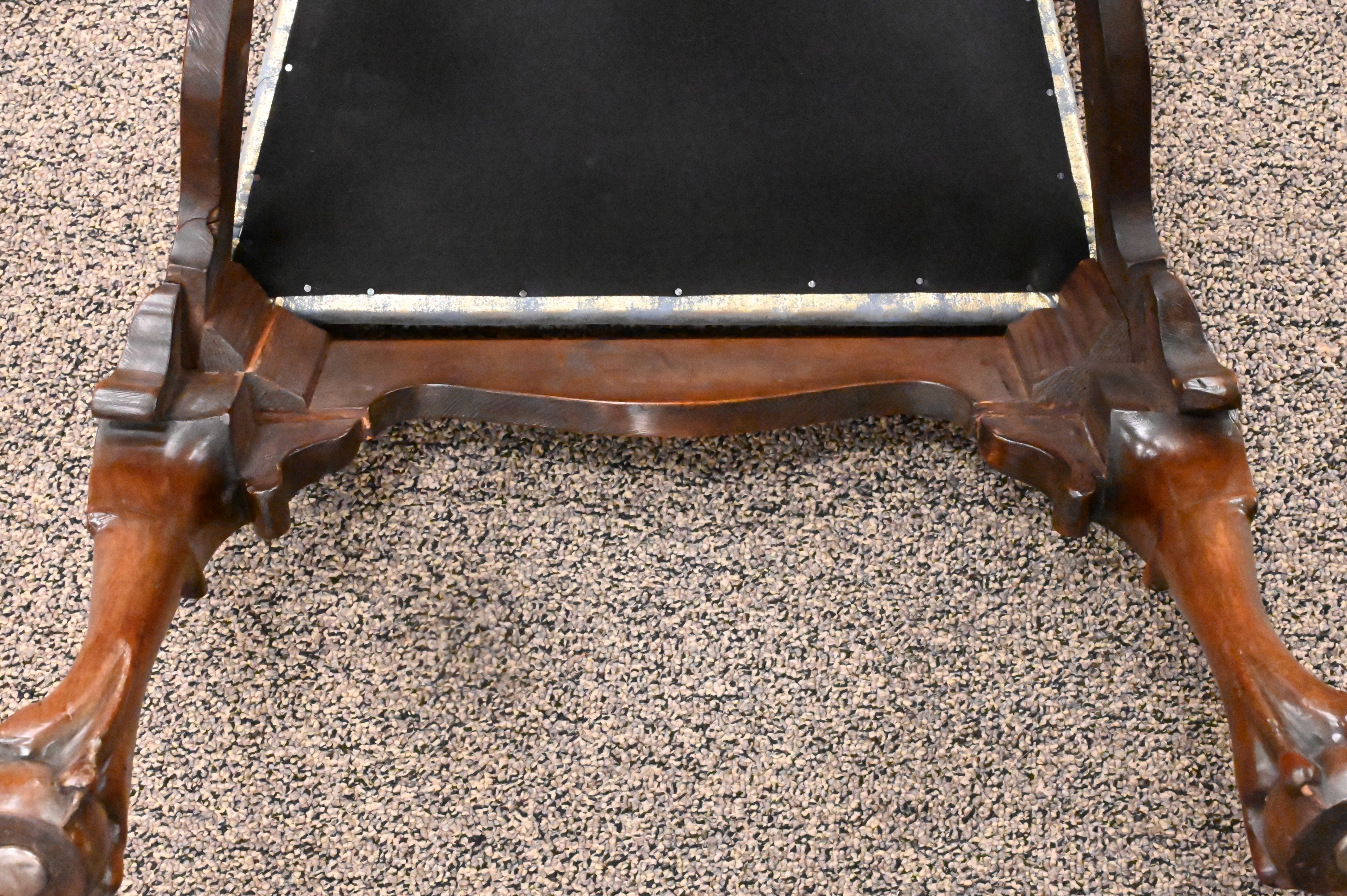 On carved cabriole legs, ending in ball and claw feet, circa 1750