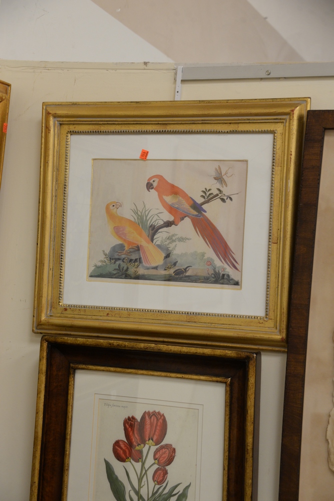 Six Piece Framed Group, to include four digital botanical prints, “Tulip Serotina Major”, “Peonia Flore Symplici”, “Papaver Orientale”, and “Lilium Bulbiferum”, all after Giovanni Battista Ferrari along with two digital bird prints, each in gilt frames, sight size 13 1/2″ x 8 1/2″, Provenance: David and Cynthia Kim, 22 Stoney Wylde Lane, Greenwich, Connecticut. View home by visiting: https://www.zillow.com/homedetails/22-Stoney-Wylde-Ln-Greenwich-CT-06830/177238281_zpid/.