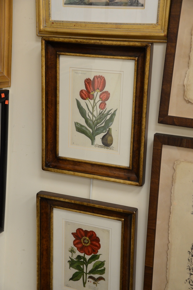 Lot 84: Six Piece Framed Group, to include four digital botanical prints, “Tulip Serotina Major”, “Peonia Flore Symplici”, “Papaver Oriental…