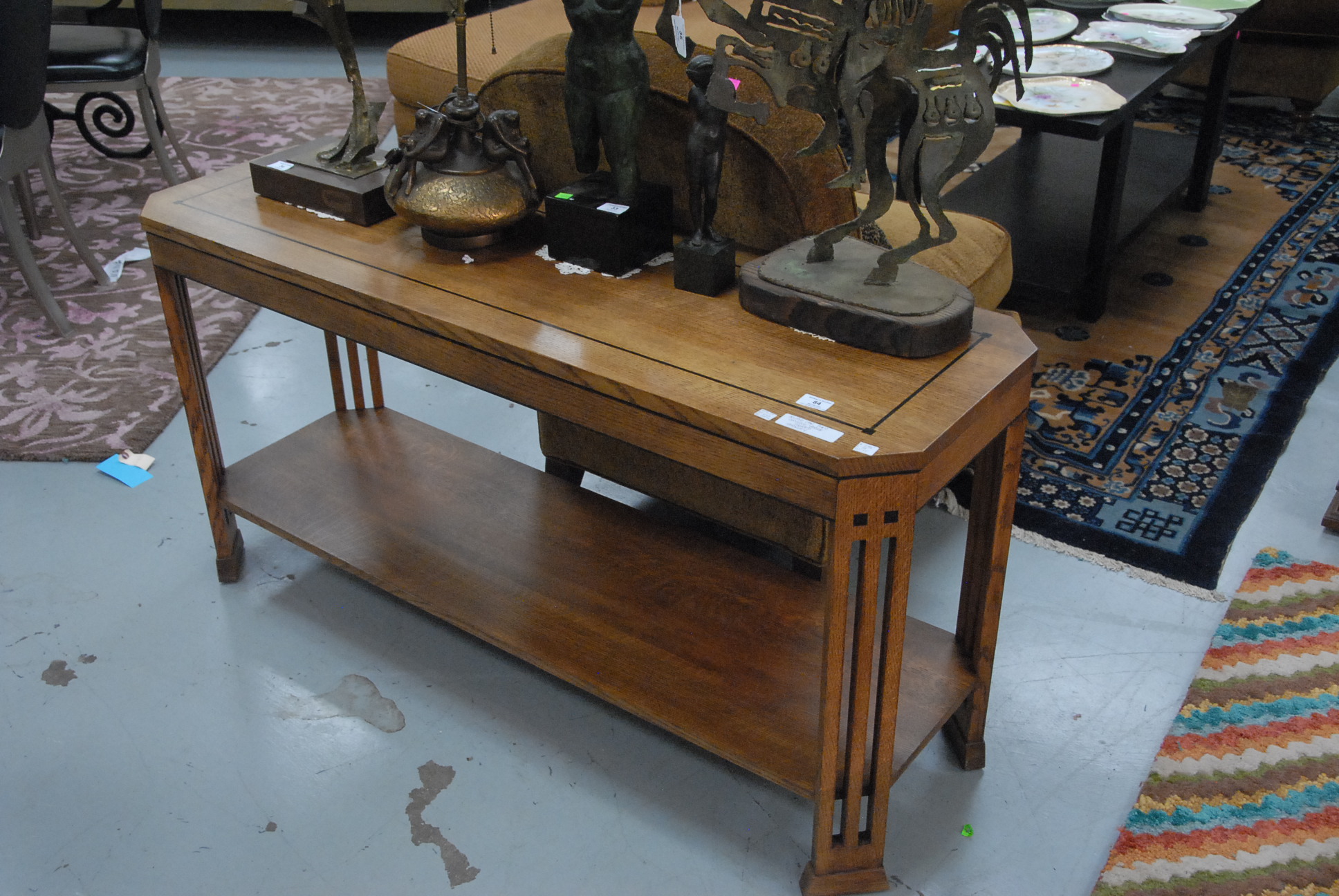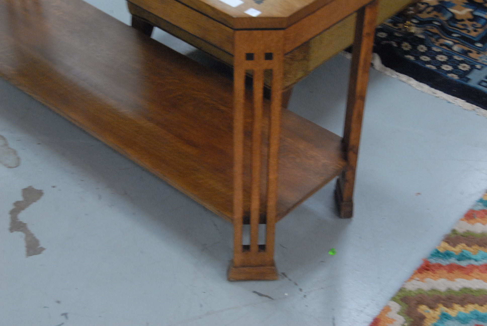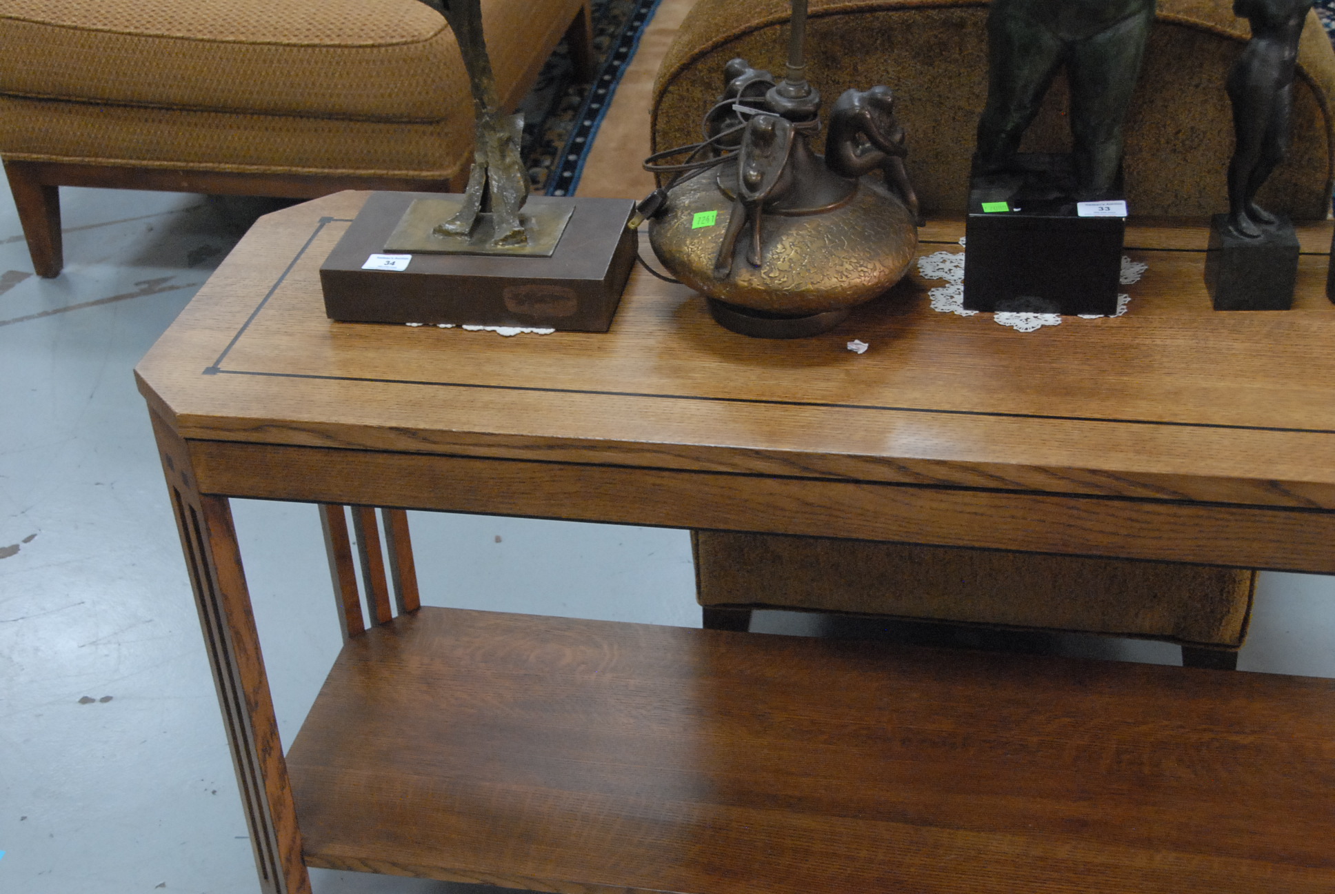 Stickley inlaid oak sofa/hall table, ht. 27 1/2in. top: 17 x 54.