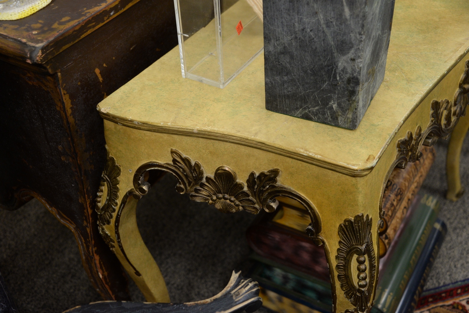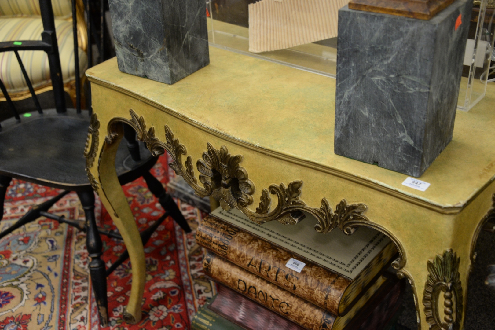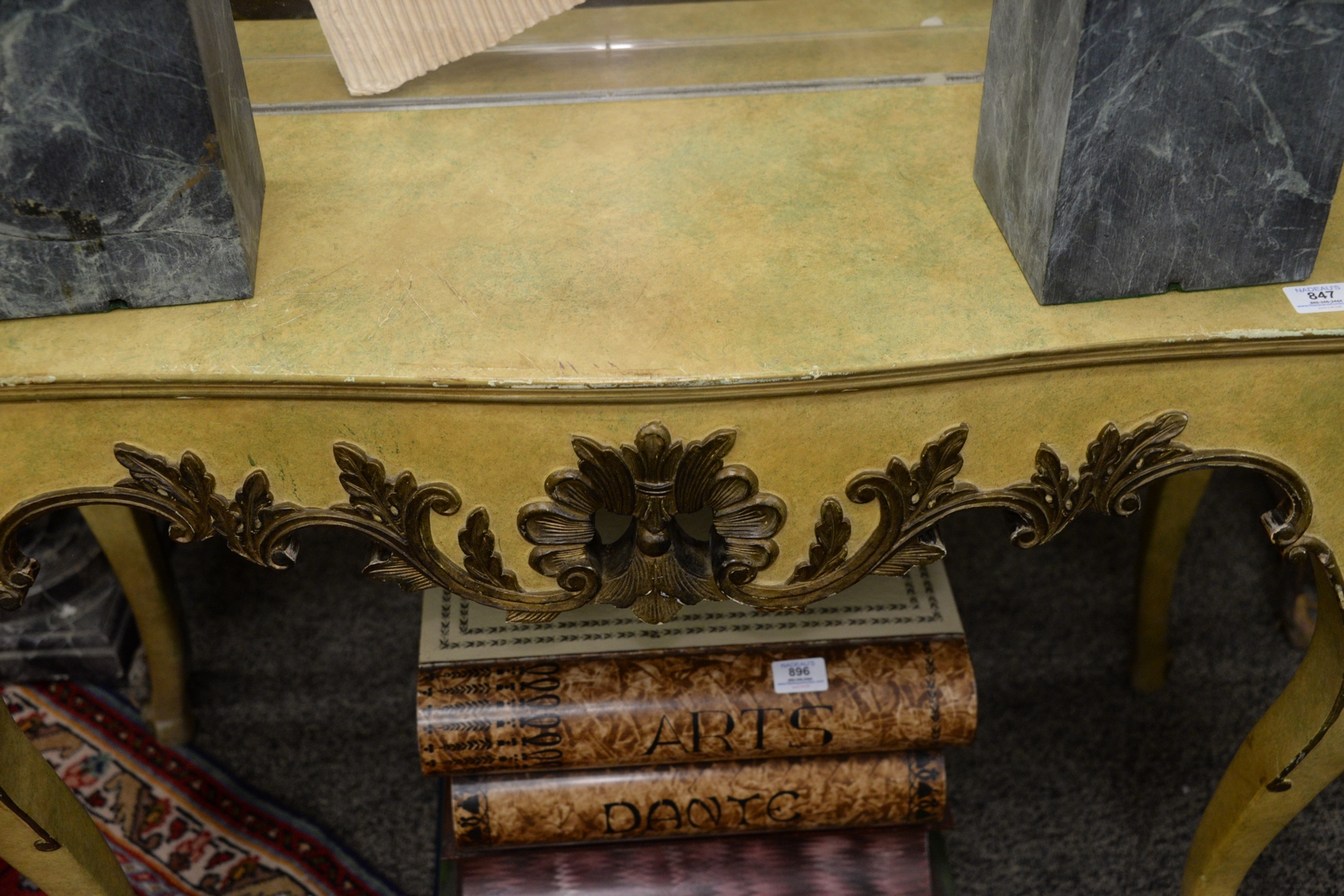 Lot 847: Louis XV Style Console Table, paint decorated, height 32 inches, width 41 inches, depth 19 inches.
