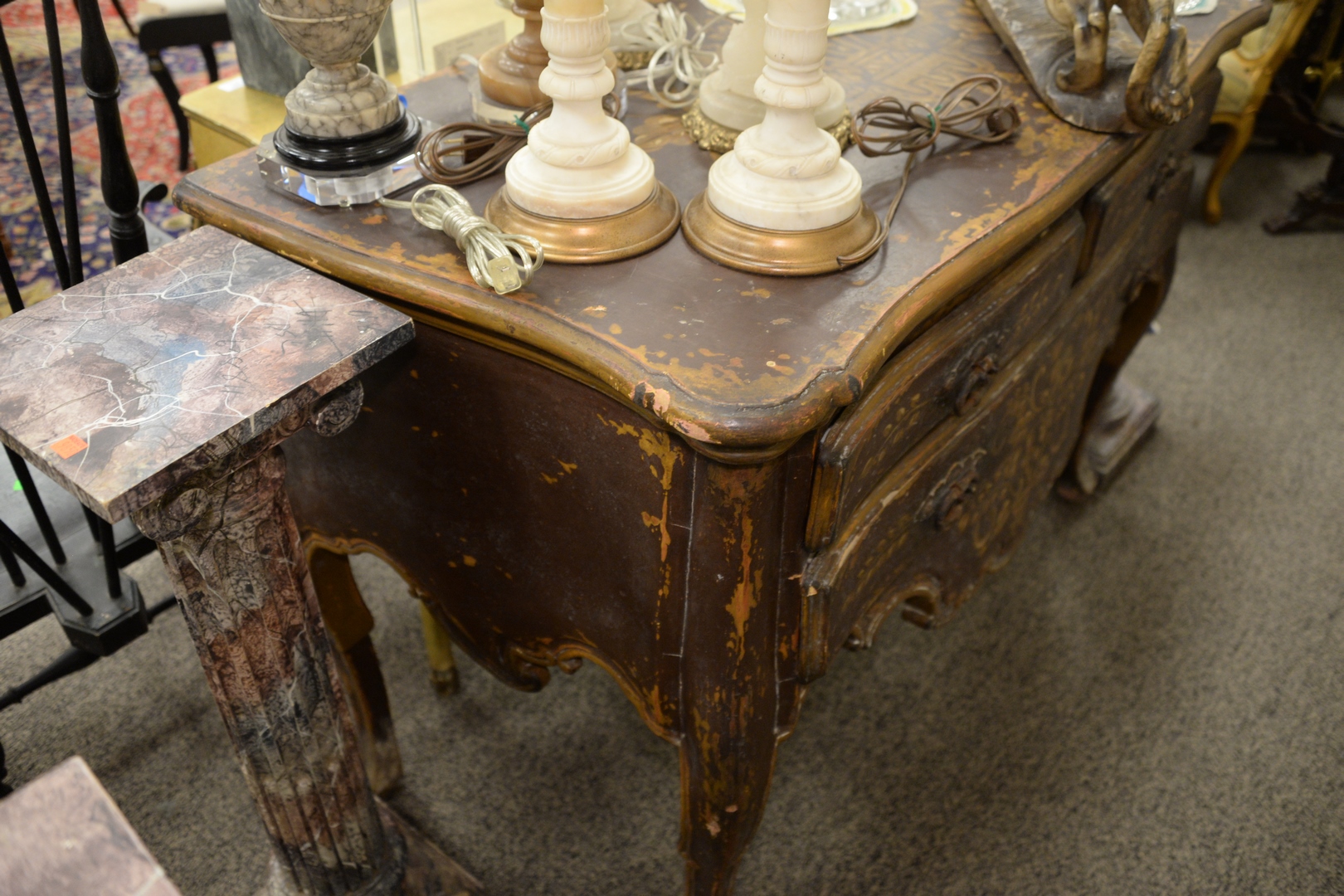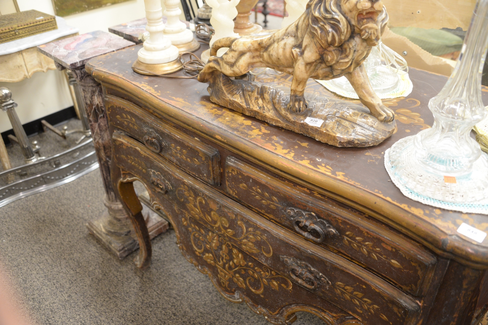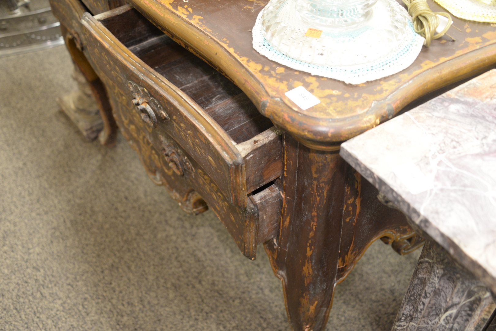 Lot 848: Portuguese Painted Commode, having two over one drawers on cabriole legs, height 37 inches, top 25 x 51.