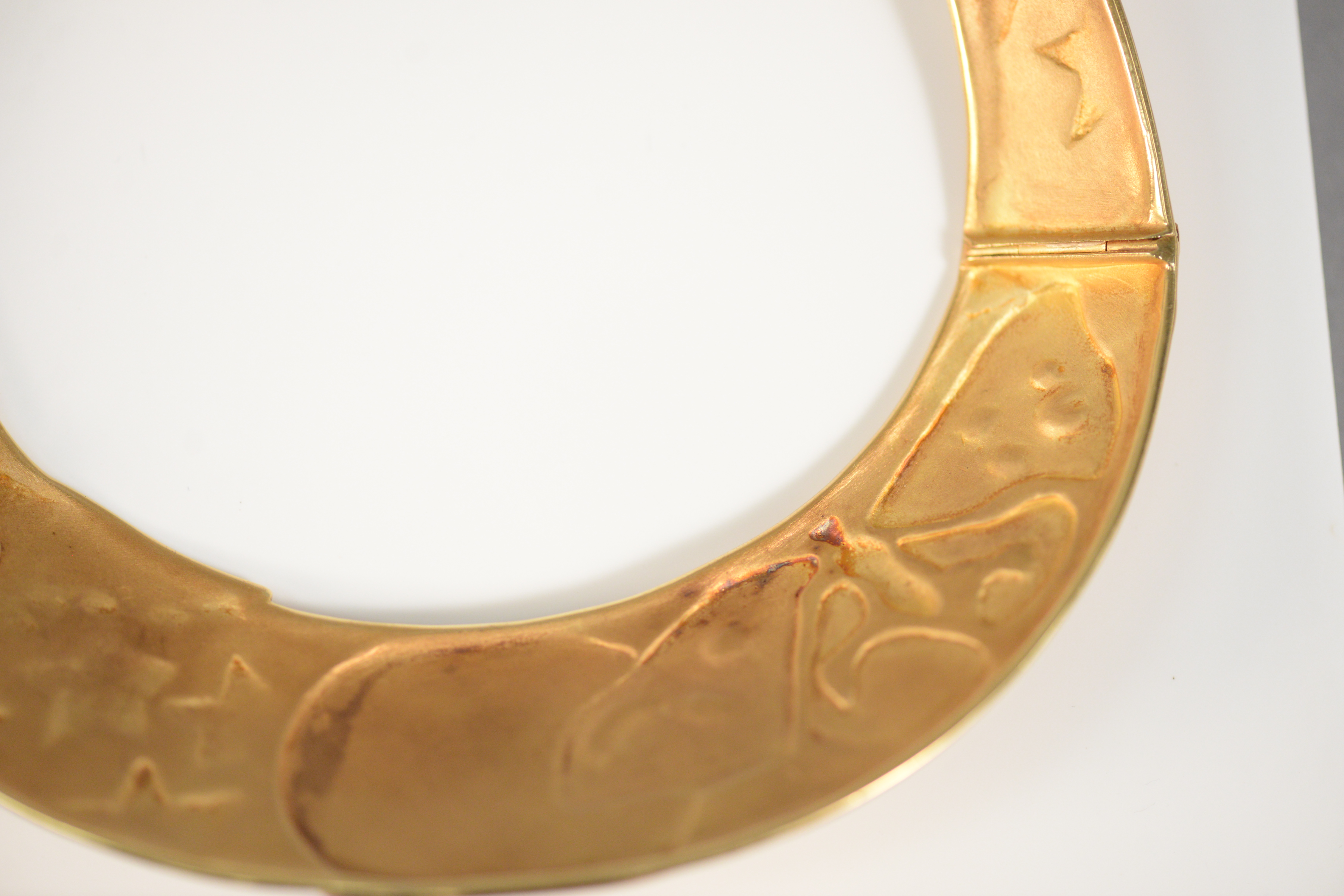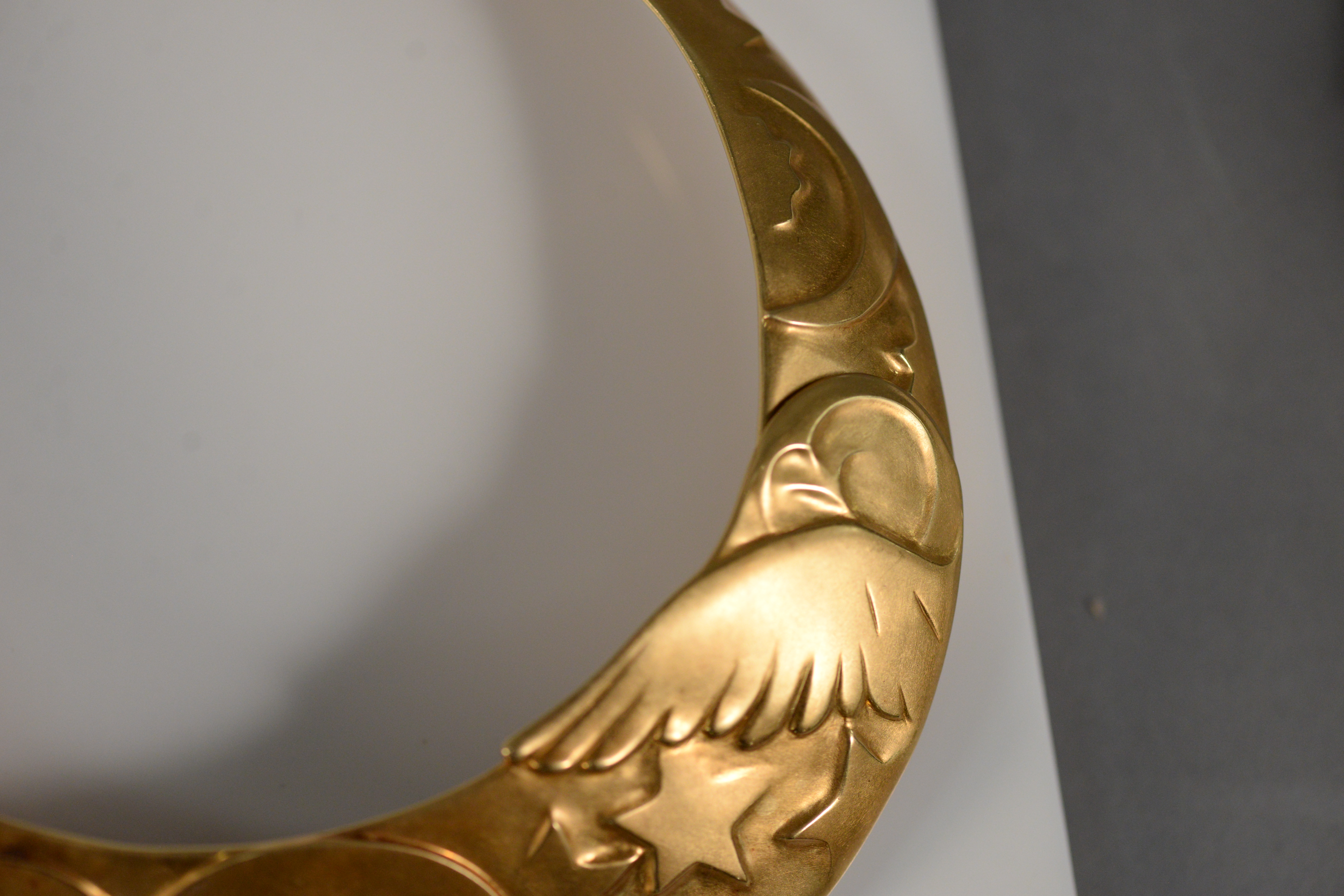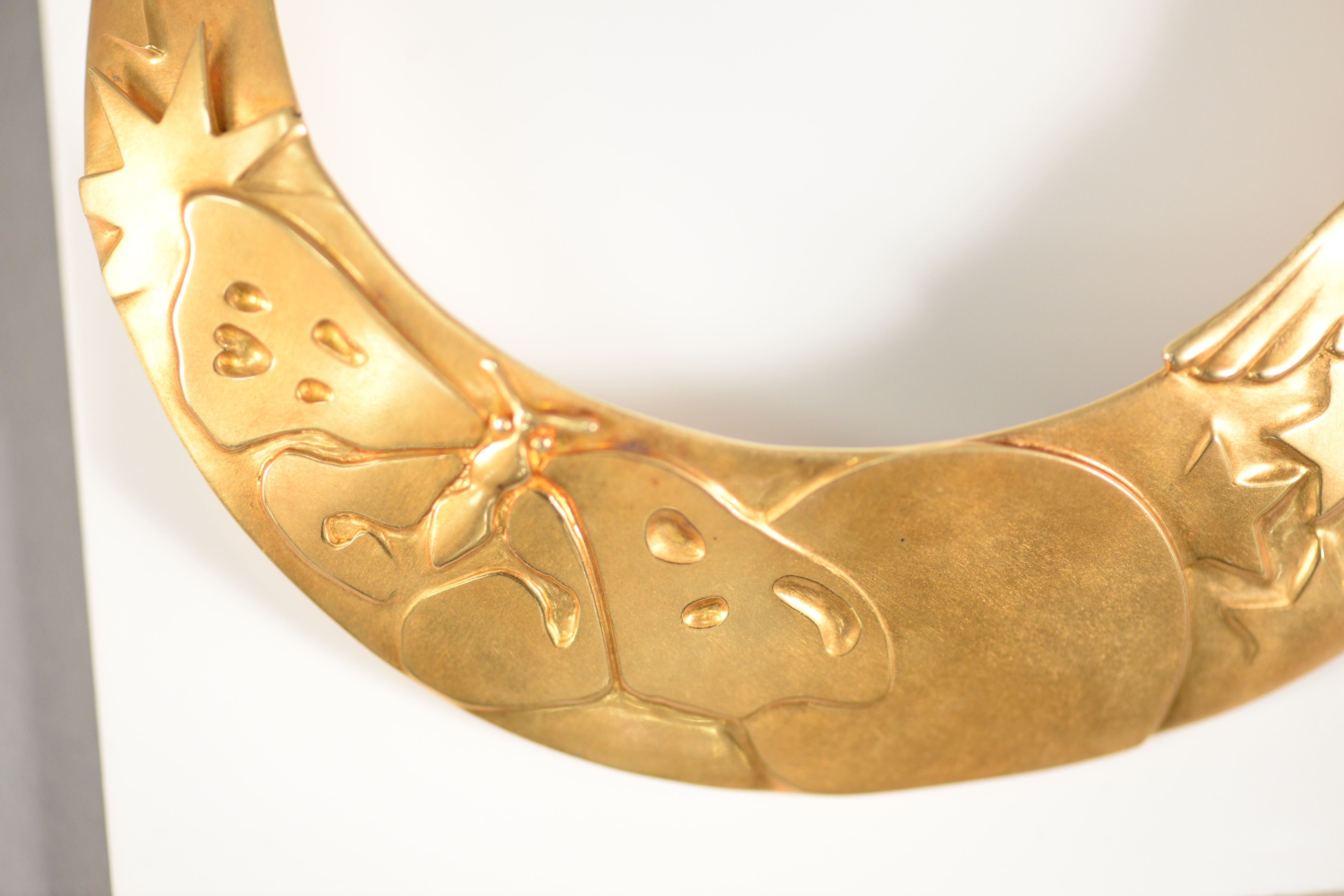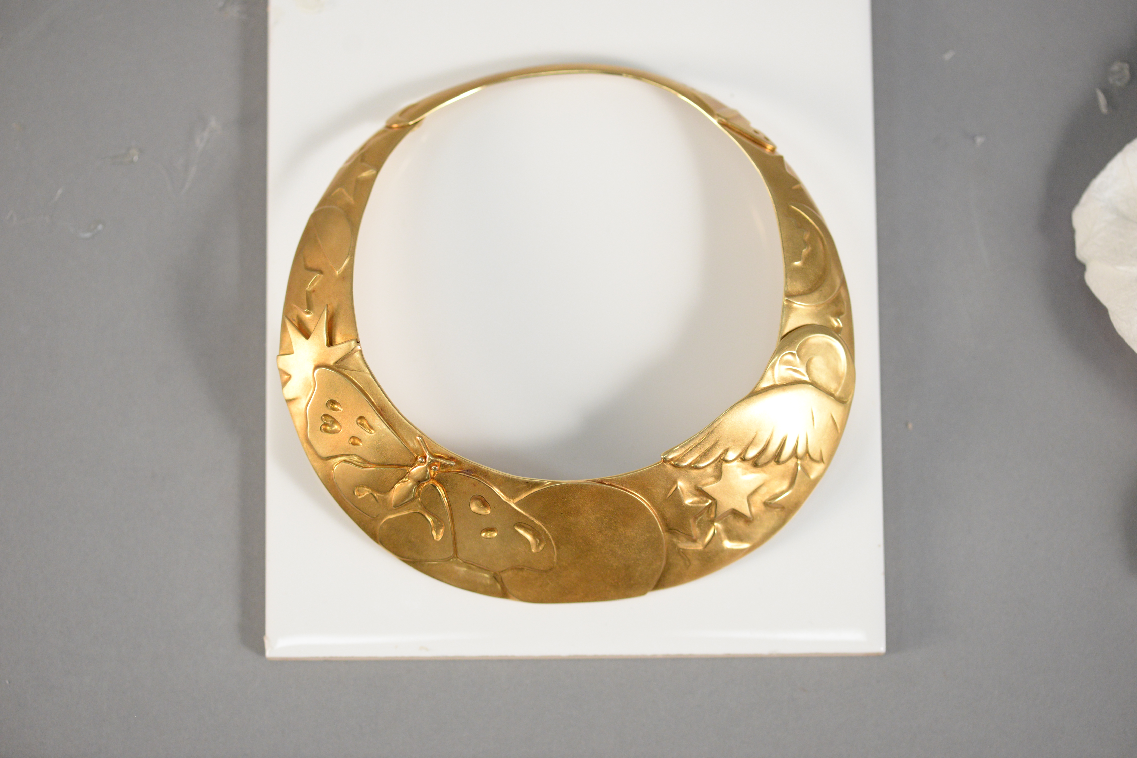 Lot 84A: Angela Cummings for Tiffany & Company 18 karat gold nocturnal design collar necklace with owl, moth, stars, and moons being sold wit…