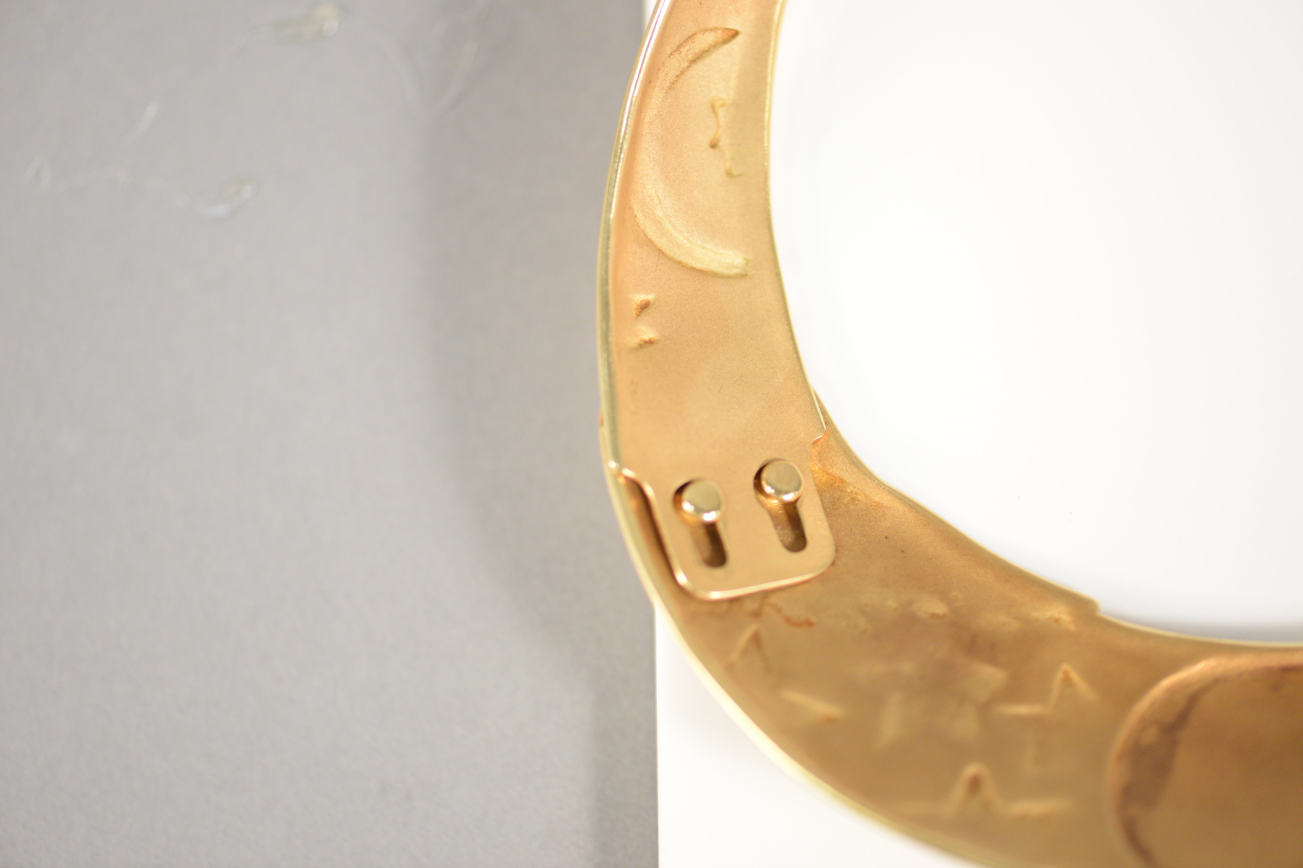 18 karat gold nocturnal design collar necklace with owl, moth, stars, and moons