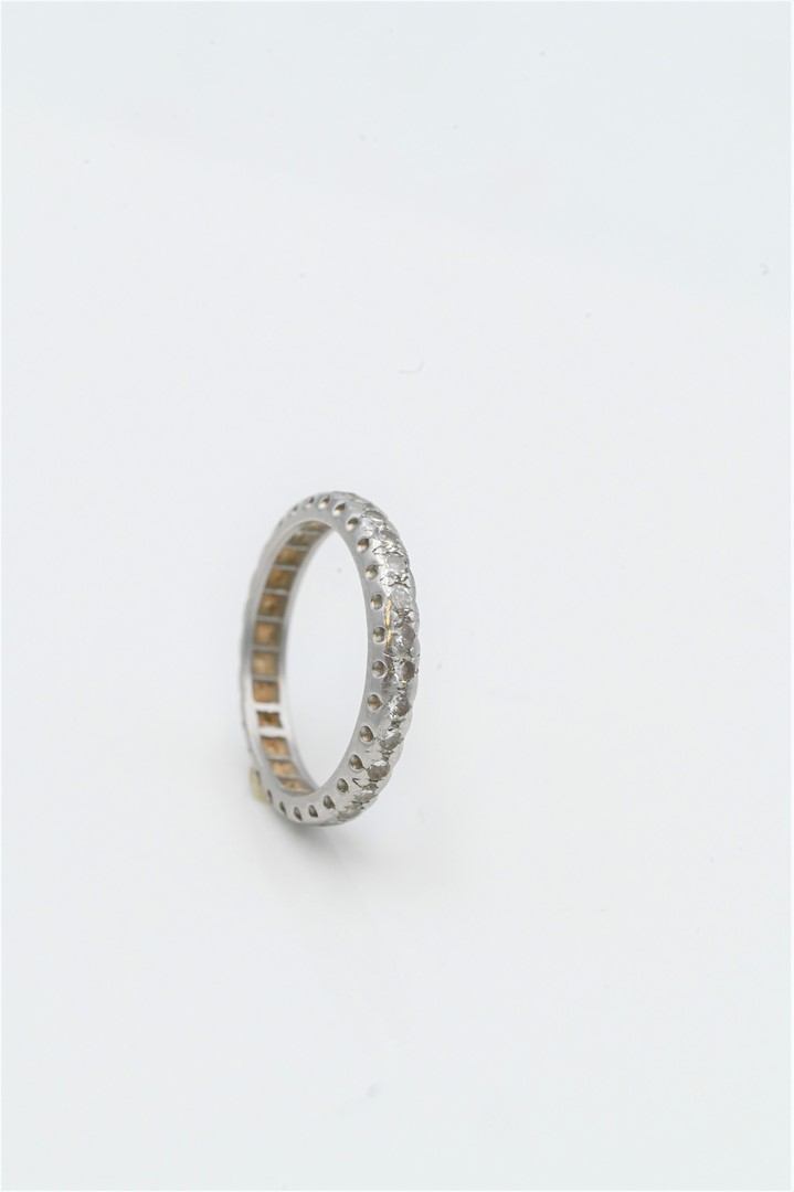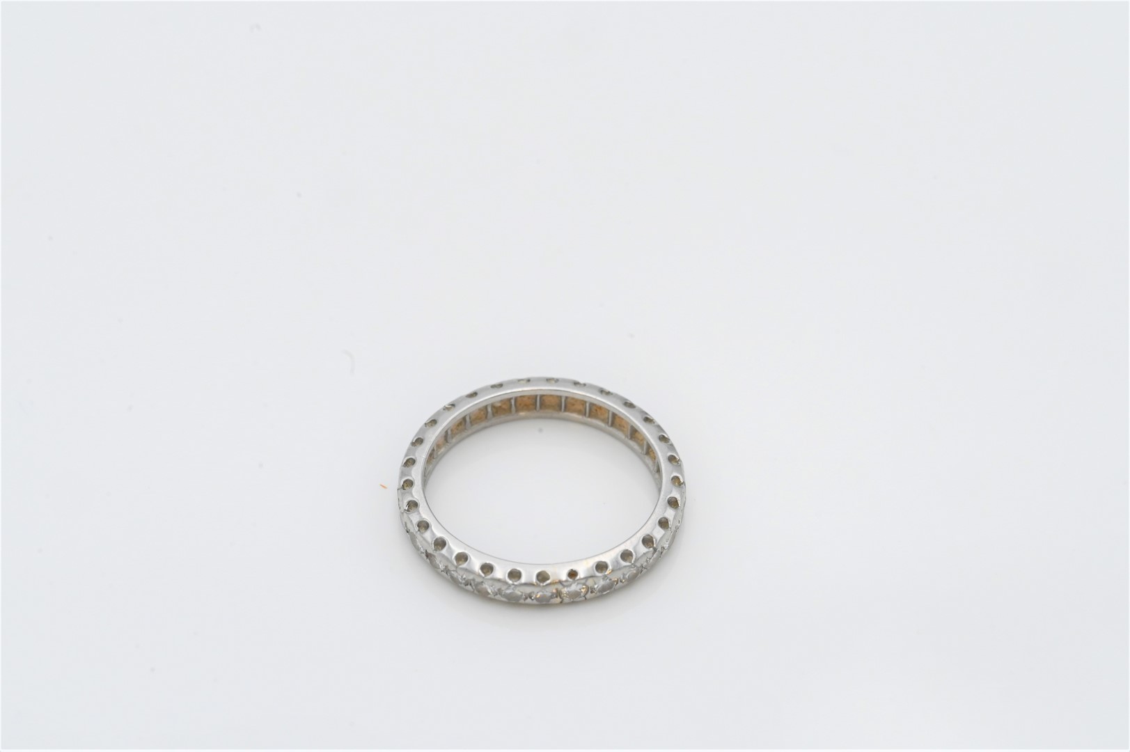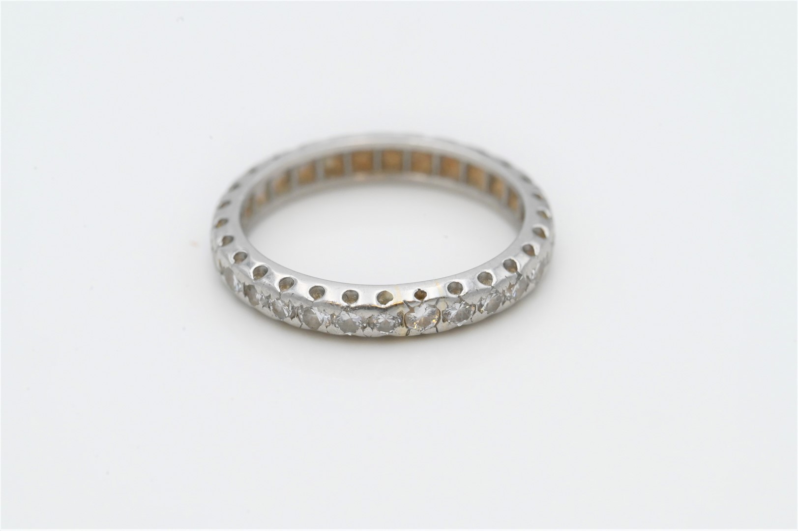 18 Karat White Gold Band channel set with diamonds size 7, 4 grams Condition: dirty but good condition