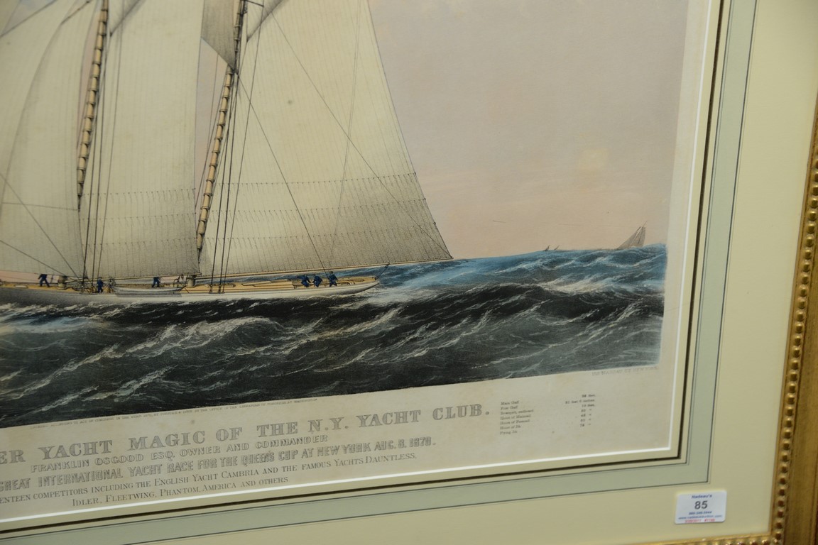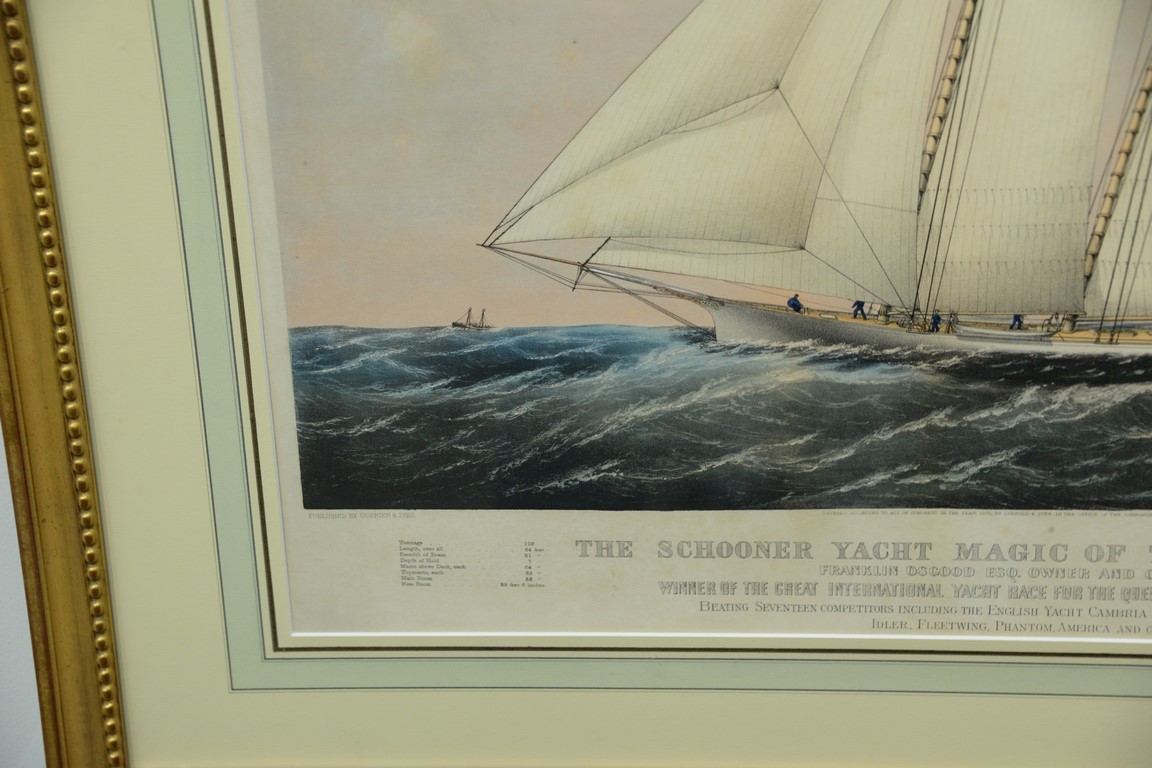 Lot 85: Currier & Ives large folio hand colored lithograph The Schooner Yacht Magic of the N.Y. Yacht Club Franklin Osgood Esq ow…