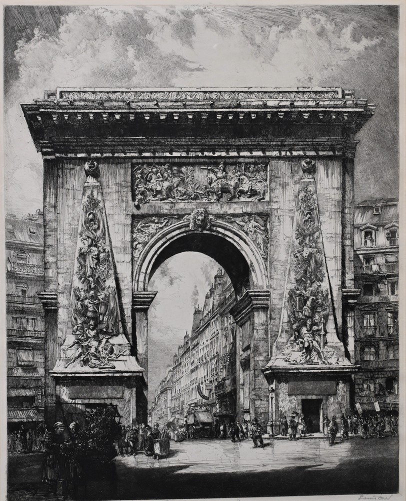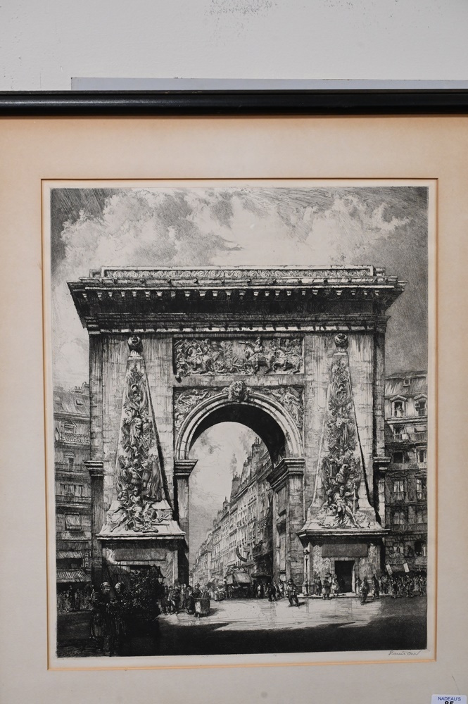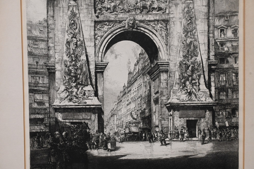 Louis Orr (American, 1879 – 1961) Etching, “La Porte, St. Denis, Paris”, pencil signed lower right, 19 1/4″ x 15 3/4″. Provenance: From the Robert Circiello Collection, West Hartford, Connecticut.