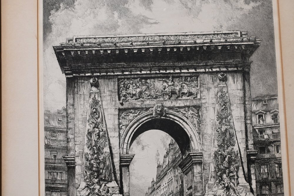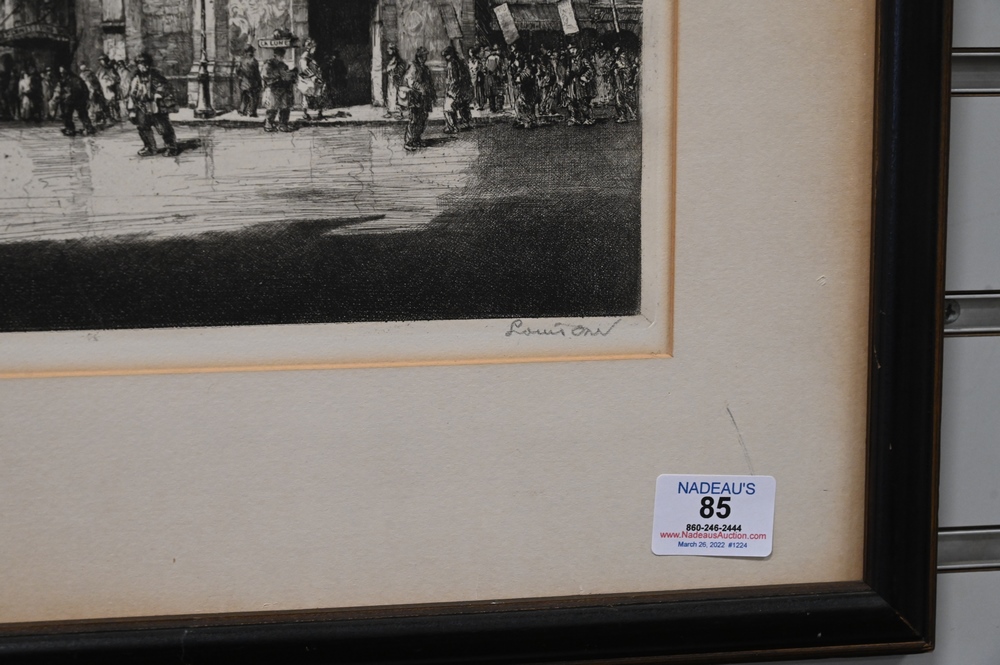 Lot 85: Louis Orr (American, 1879 – 1961) Etching, “La Porte, St. Denis, Paris”, pencil signed lower right, 19 1/4″ x 15 3/4″. Provenance: F…