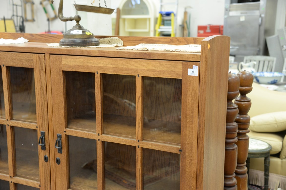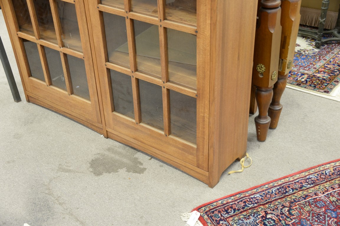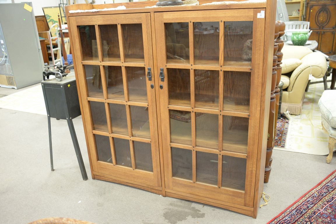 Lot 85: Mission Oak style two door bookcase. ht. 61 in. wd. 59 in. dp. 13 in.