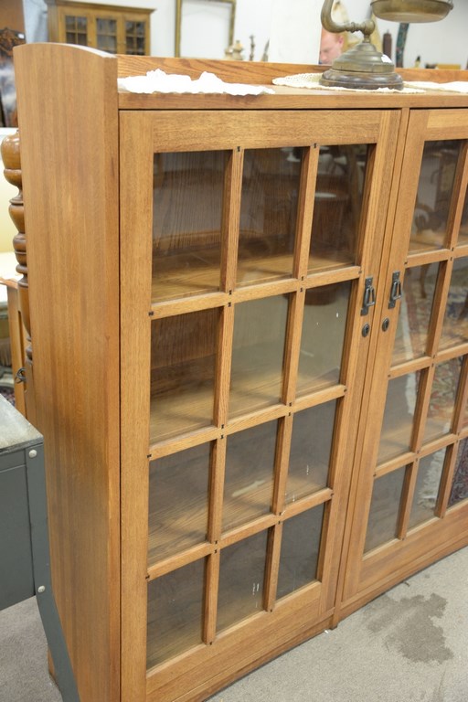 Mission Oak style two door bookcase. ht. 61 in. wd. 59 in. dp. 13 in.