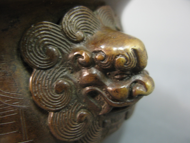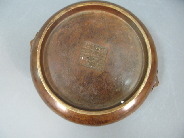 Qing Dynasty bronze incense burner with Daming XuanDe LiuNian BongBuSiLang ZhaoZhongZhi JianZhi mark, the 6th year of the Ming XuanDe period.