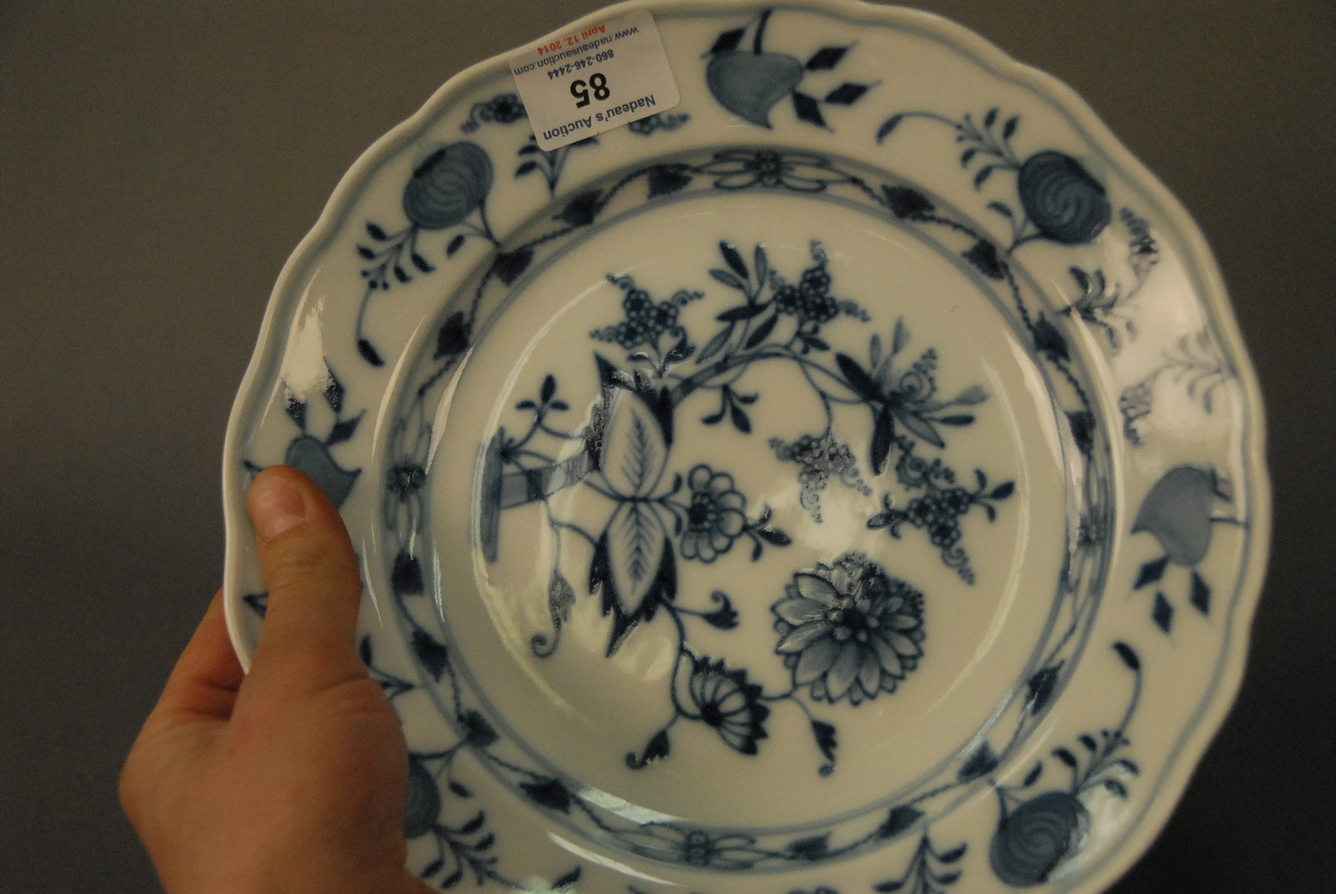 Set of ten Meissen Blue Onion pattern deep plate, marked with crossed swords, dia. 10in.