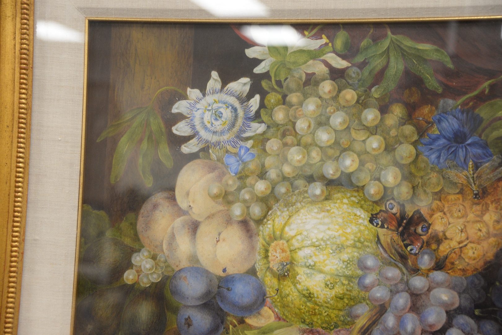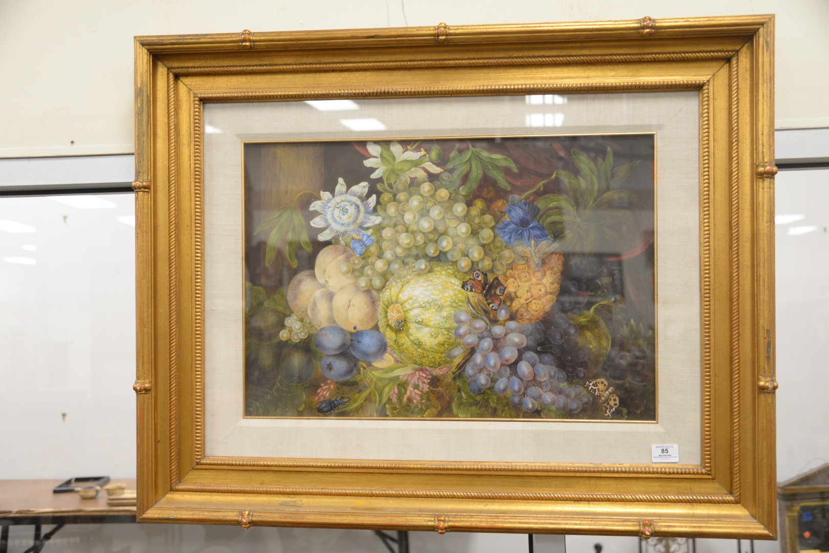 Lot 85: Unknown Artist 19th century or later, still life with grapes, watercolor on paper, unsigned, sight size 16 1/2 x 24 1/2.