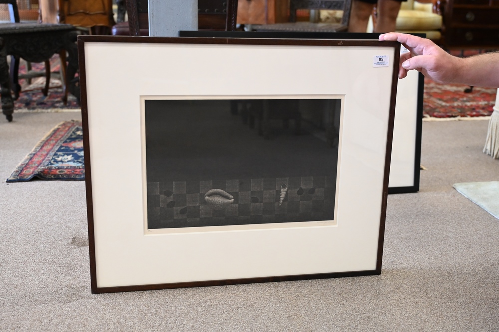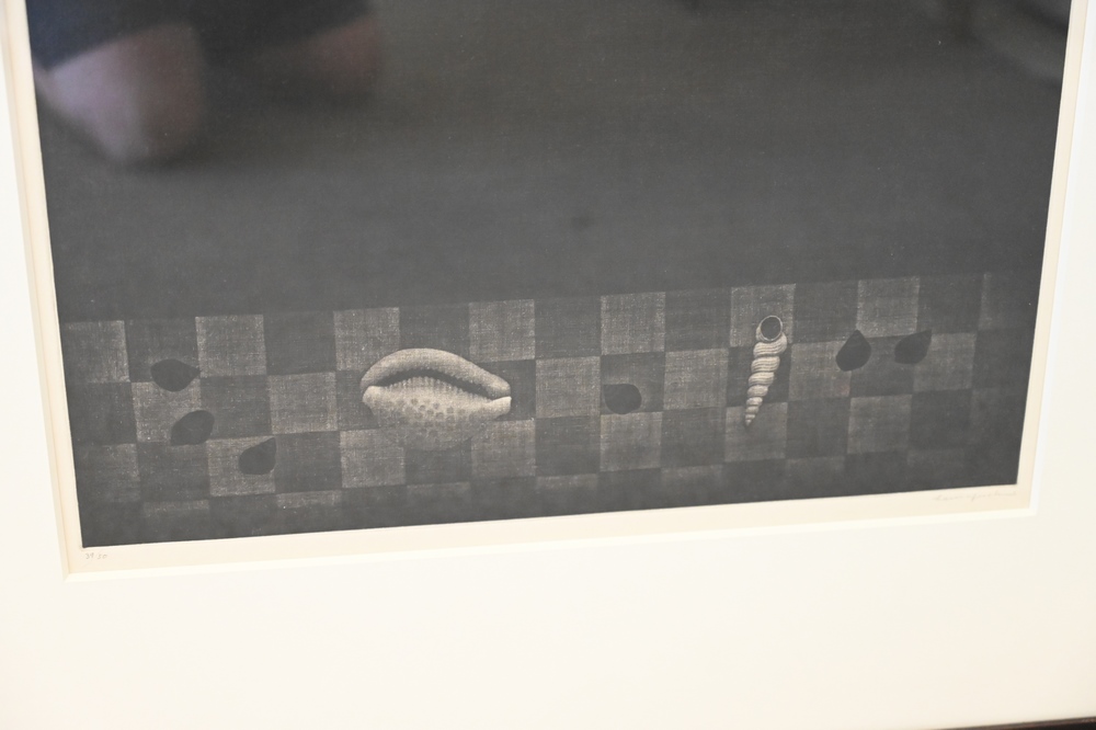 Lot 85: Yozo Hamaguchi (Japanese, 1909 – 2000), “Coquillages”, etching on paper, signed and numbered “39/50″ in pencil through the lower margin, image size 11 1/2″ x 17 1/4”.