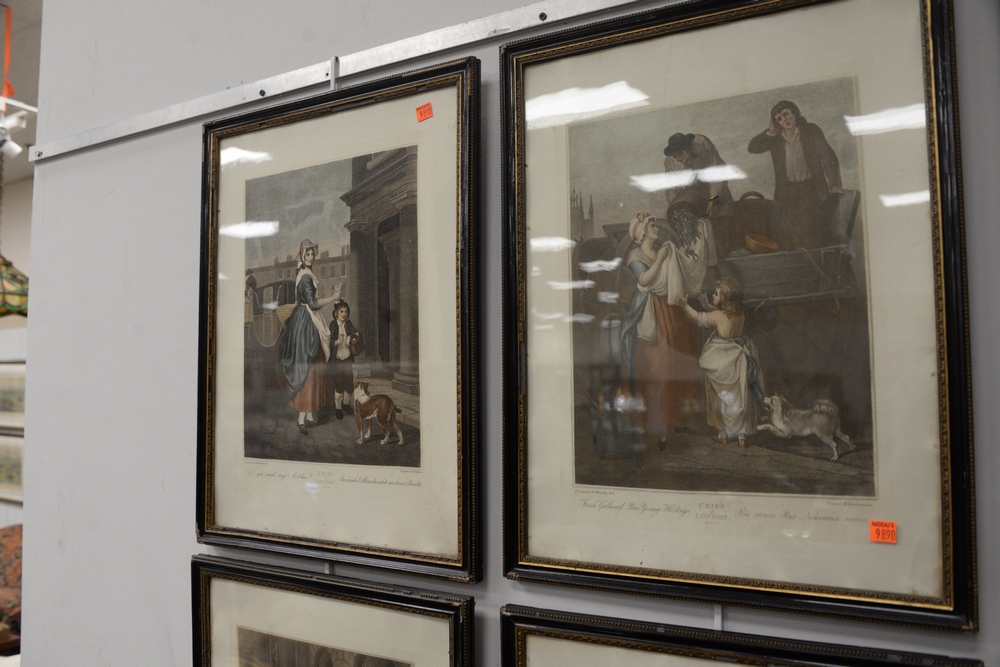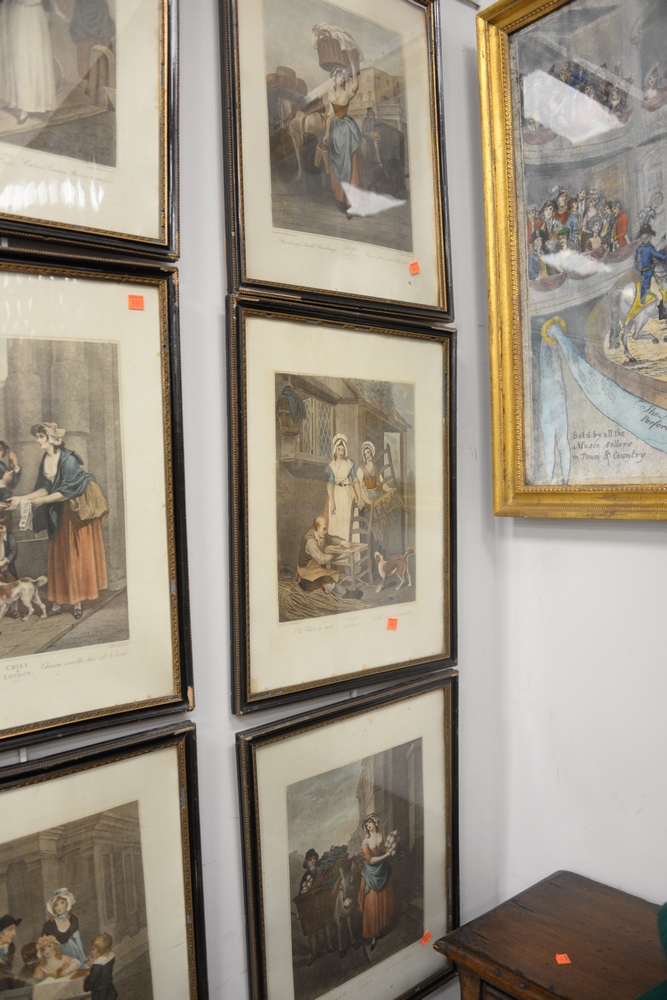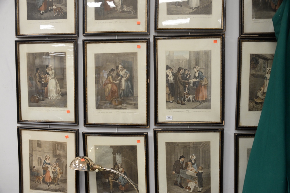 Lot 86: After Francis Wheatley (English 1747 – 1801), complete set of thirteen “Cries of London”, engravings on paper having hand coloring, …