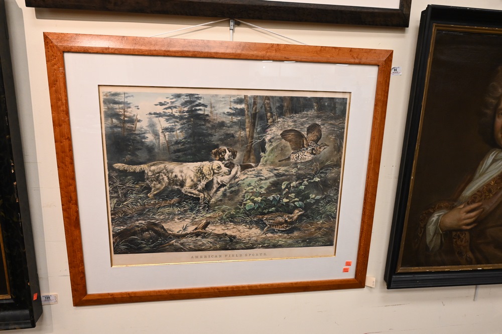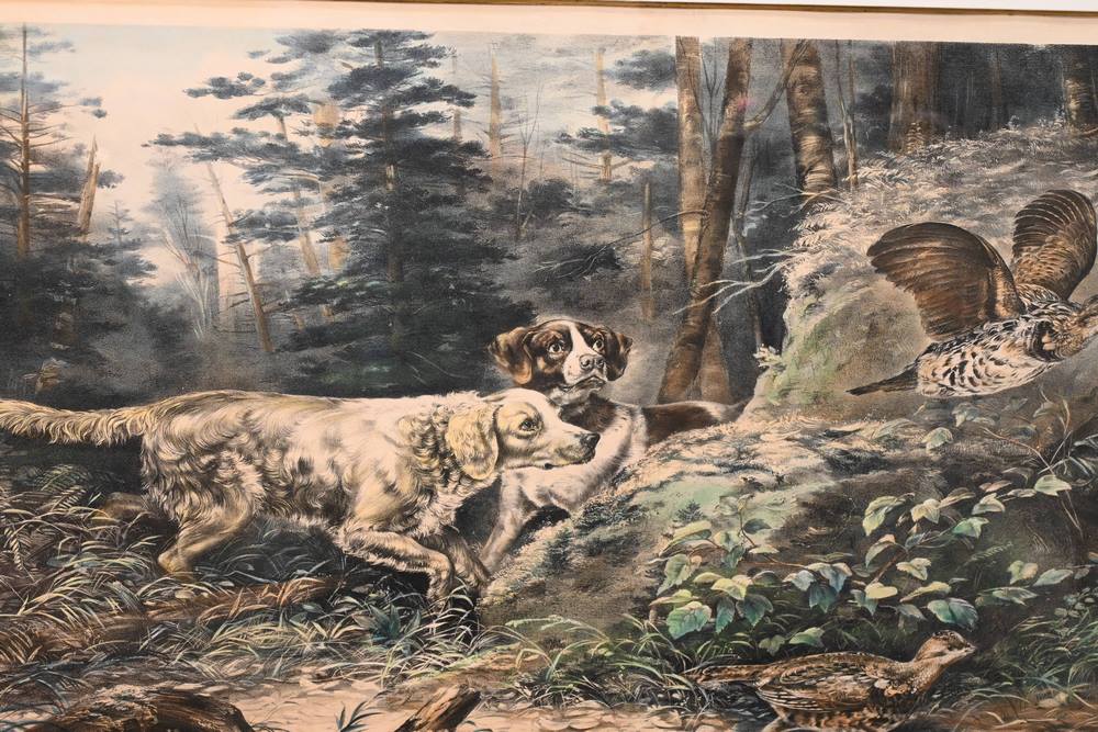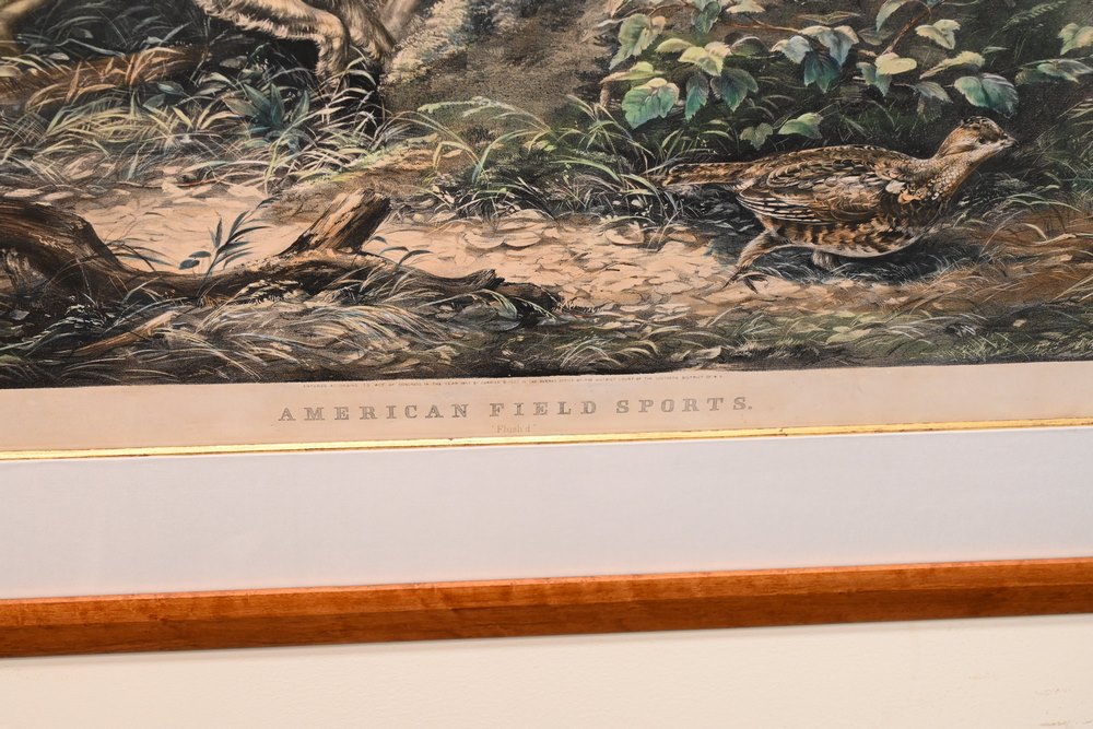 Lot 86: Currier and Ives after Arthur Fitzwilliam Tait “American Field Sports, Flushed, 1857” lithograph with hand coloring on paper inscribed in plate through the lower margin image size 18 1/2 x 26 1/2 inches