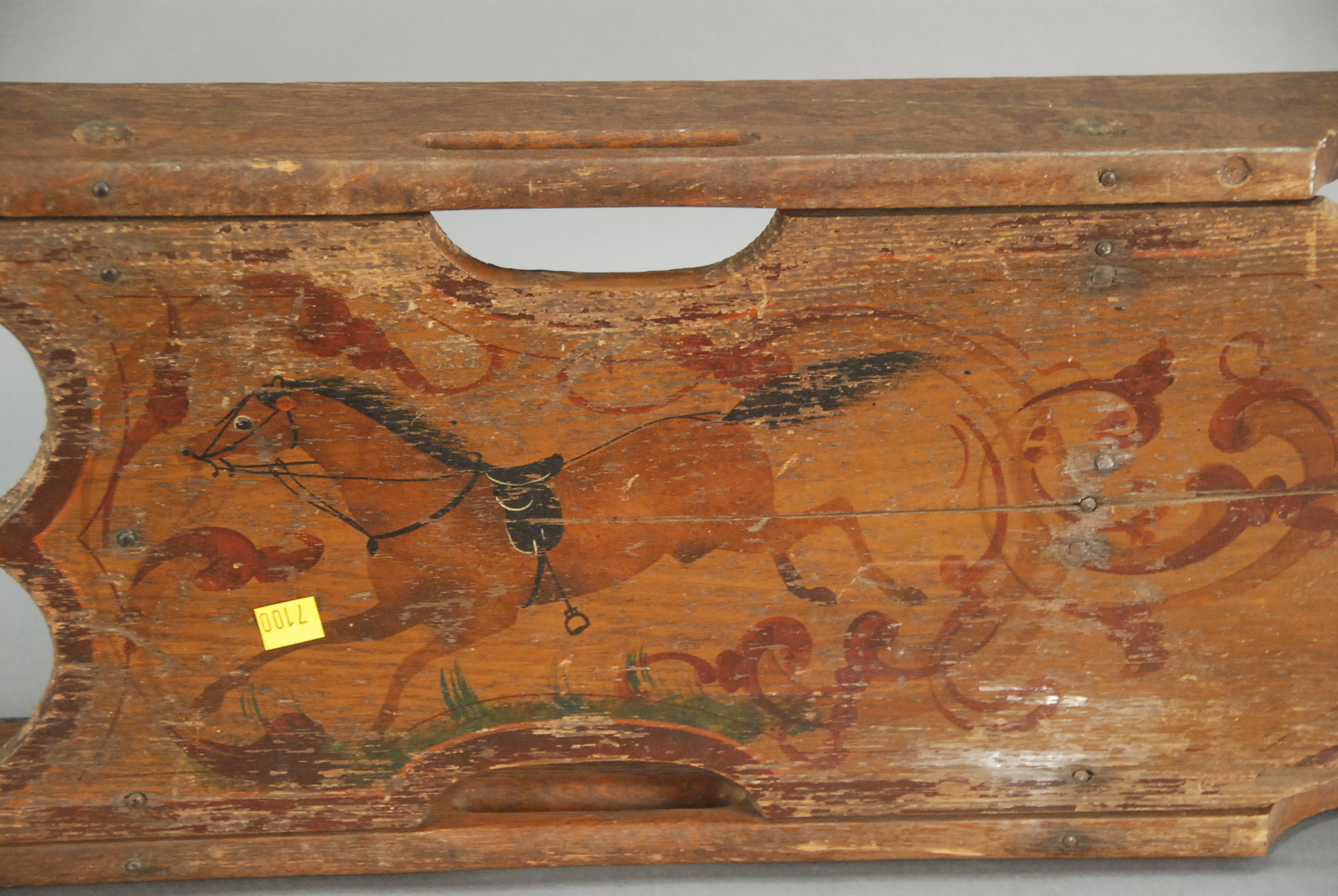 Early sled with original paint decoration depicting horse, lg. 43in.