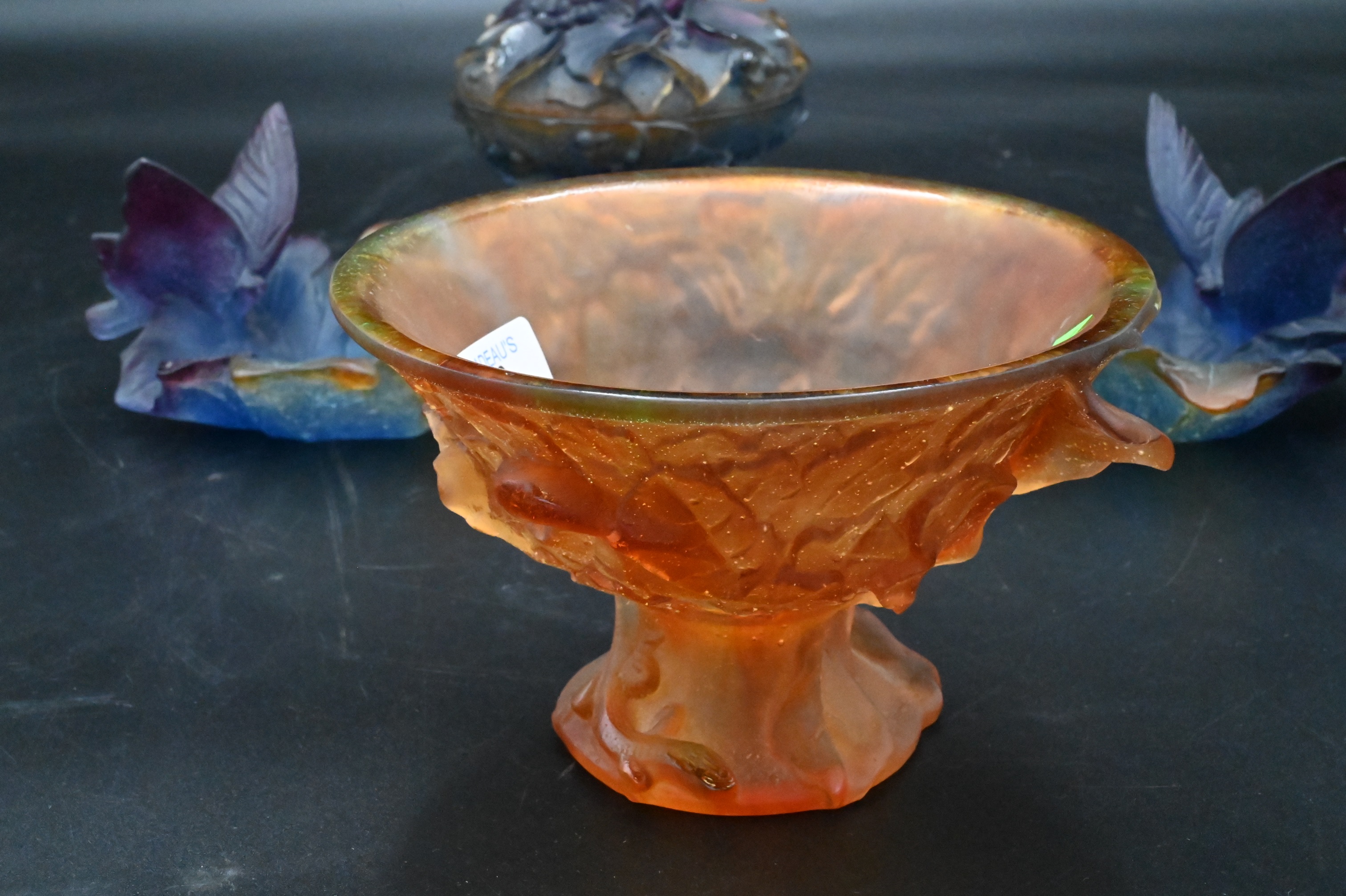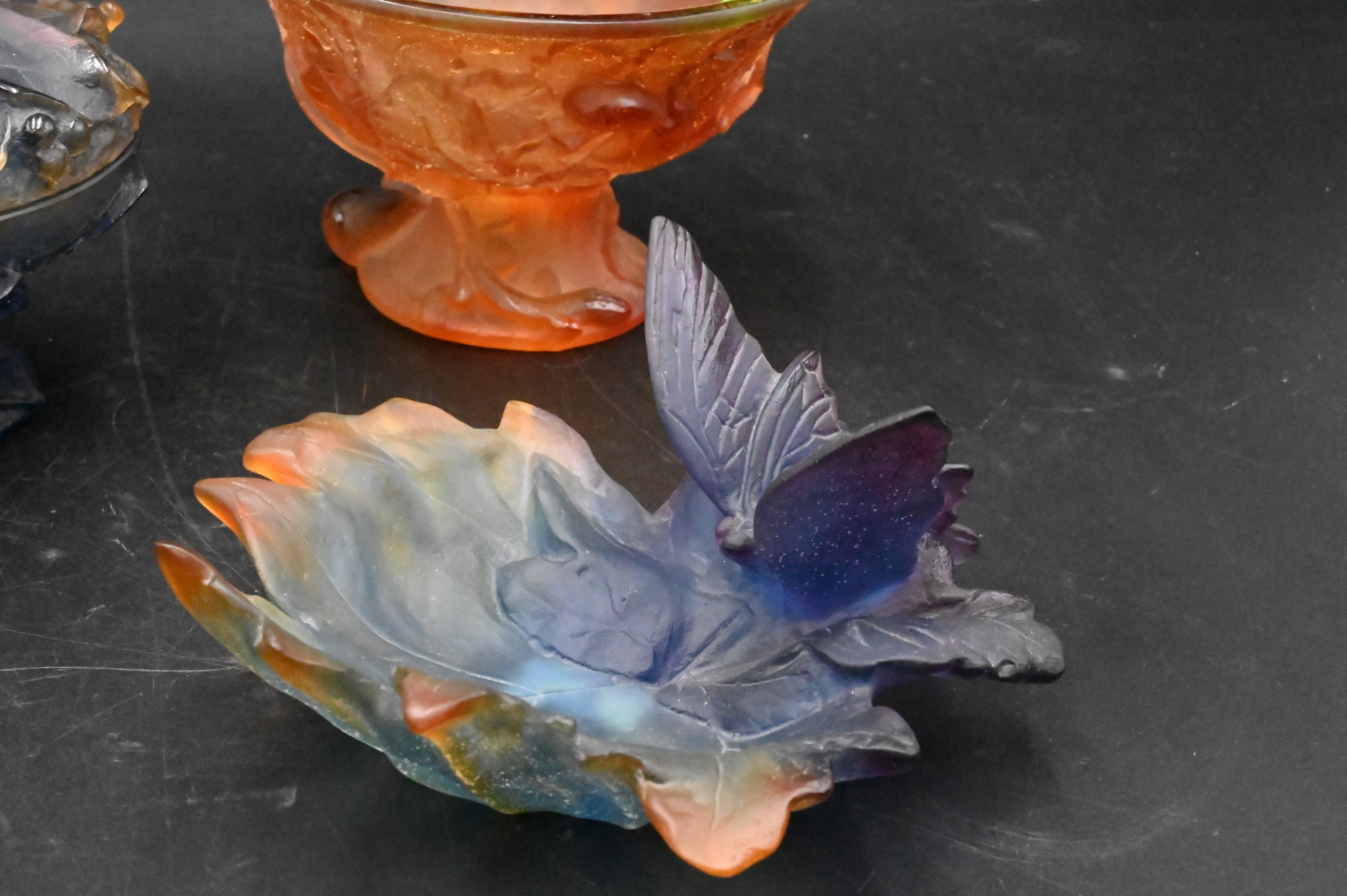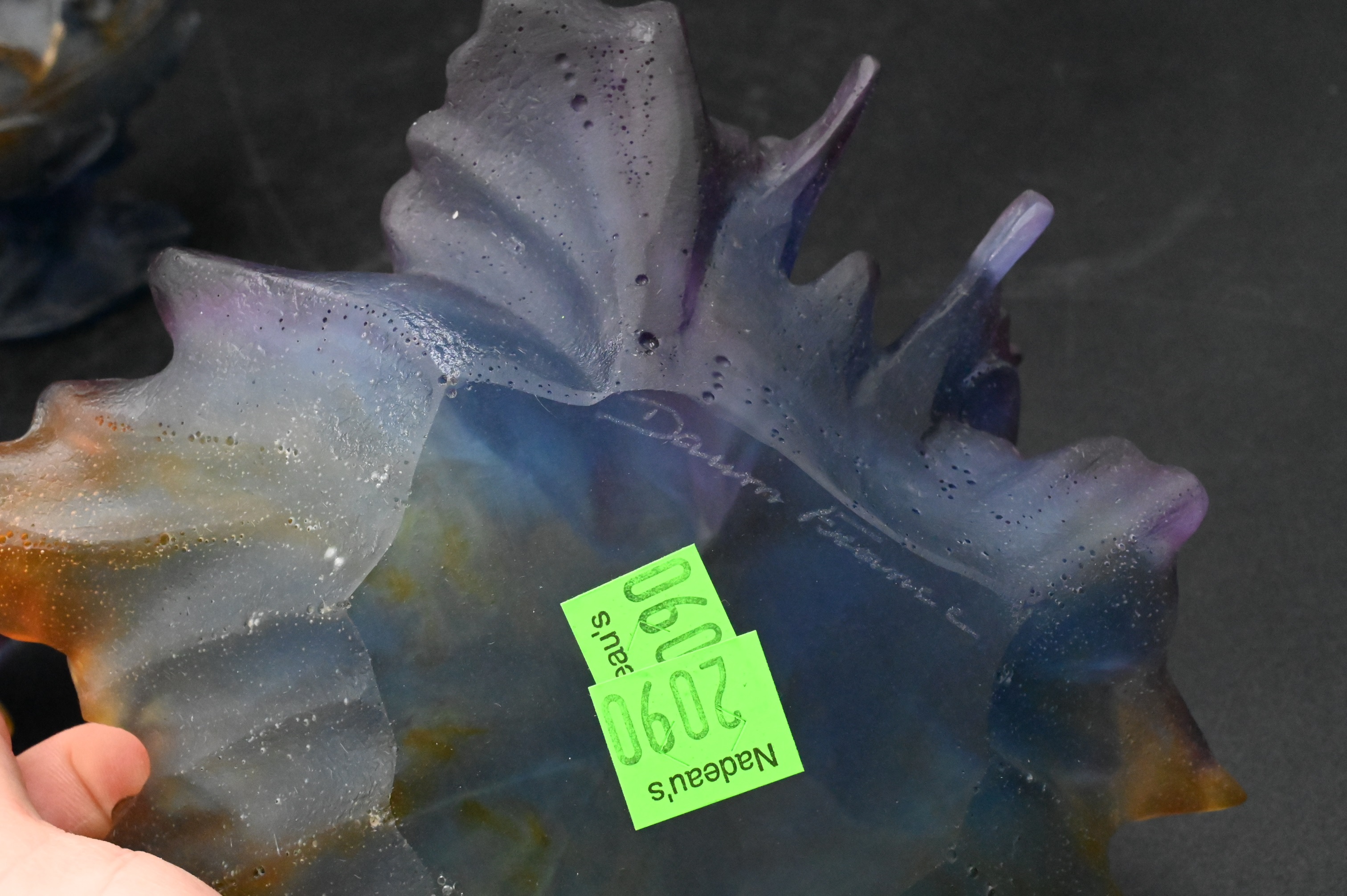 Four Daum Dishes, one having cover, all with original boxes, heights of 2 1/2 inches – 5 1/4 inches.