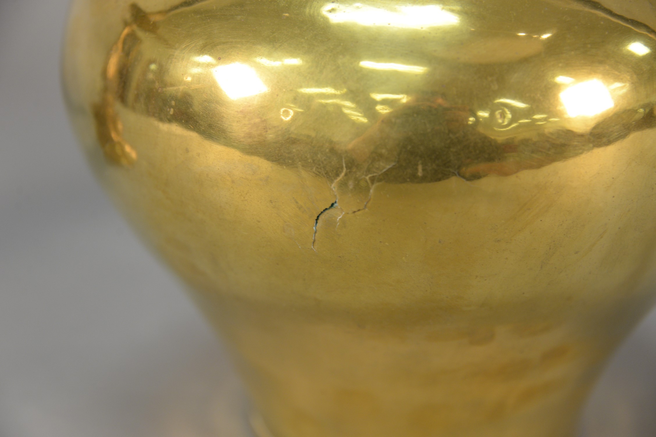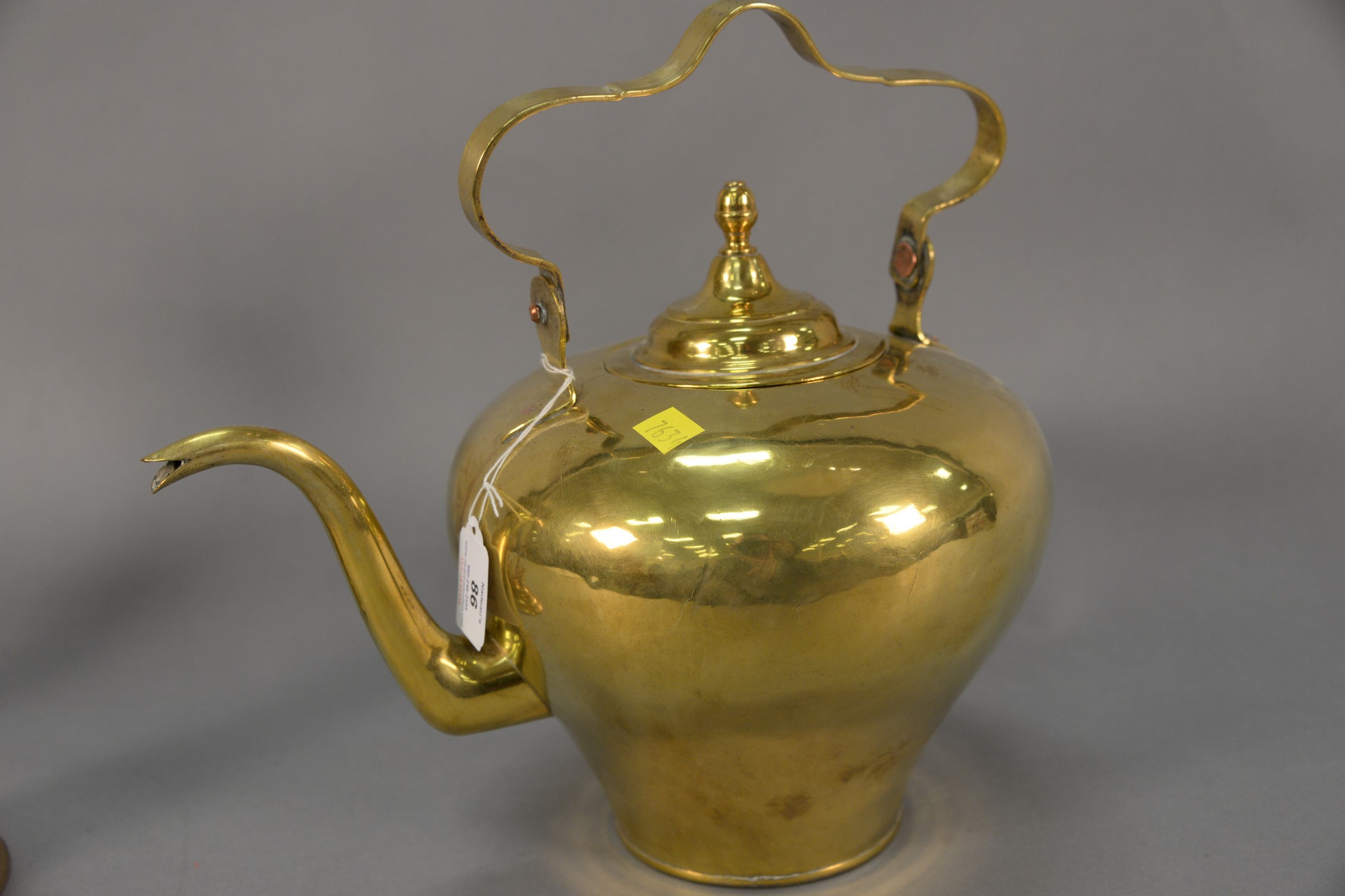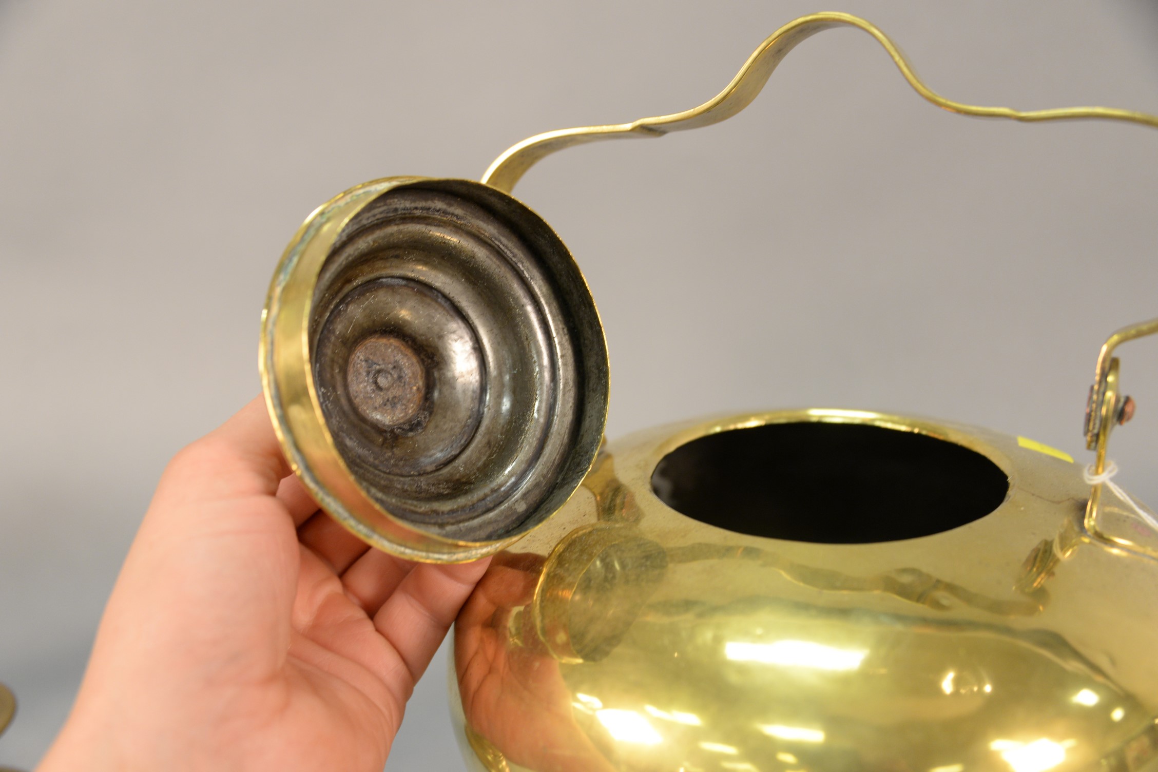 Lot 86: Large early turned brass teapot with swing handle. ht. 12 1/2 in. Provenance: The Estate of Sylvia Leven