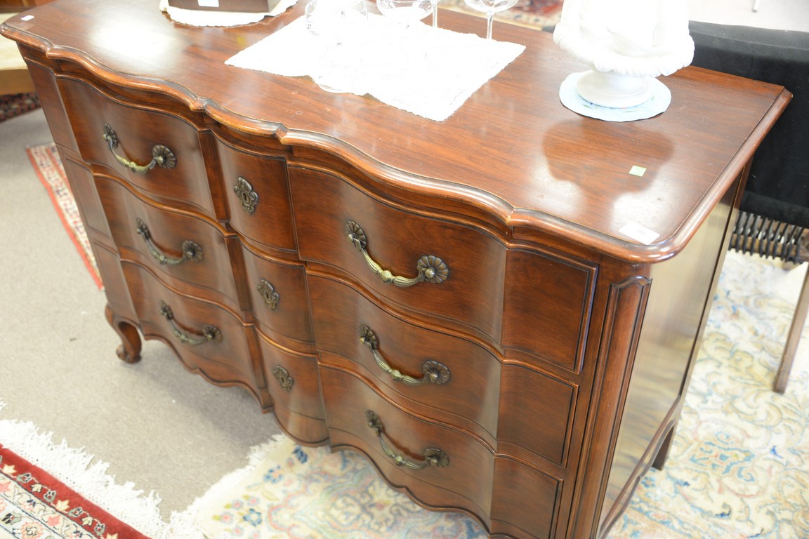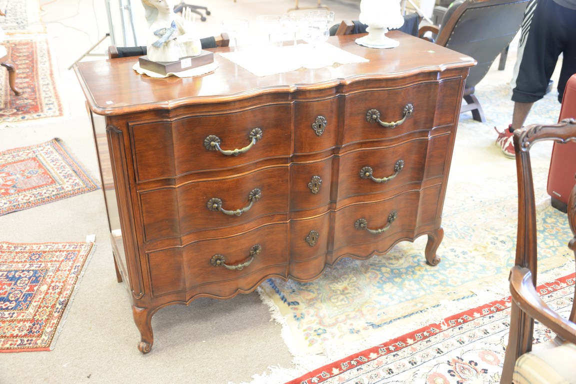 Louis XV style three drawer chest. ht. 34 in. wd. 50 in.