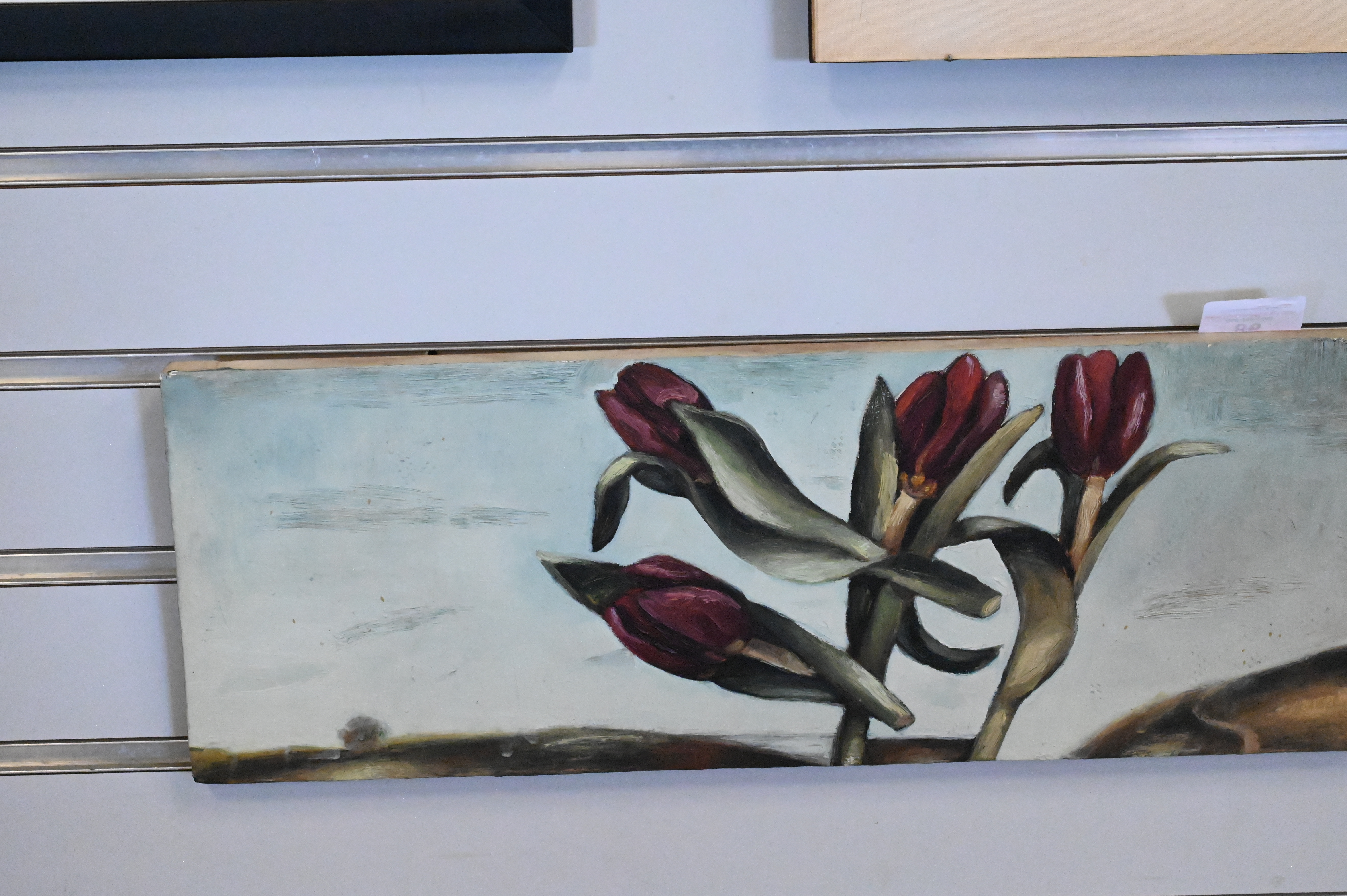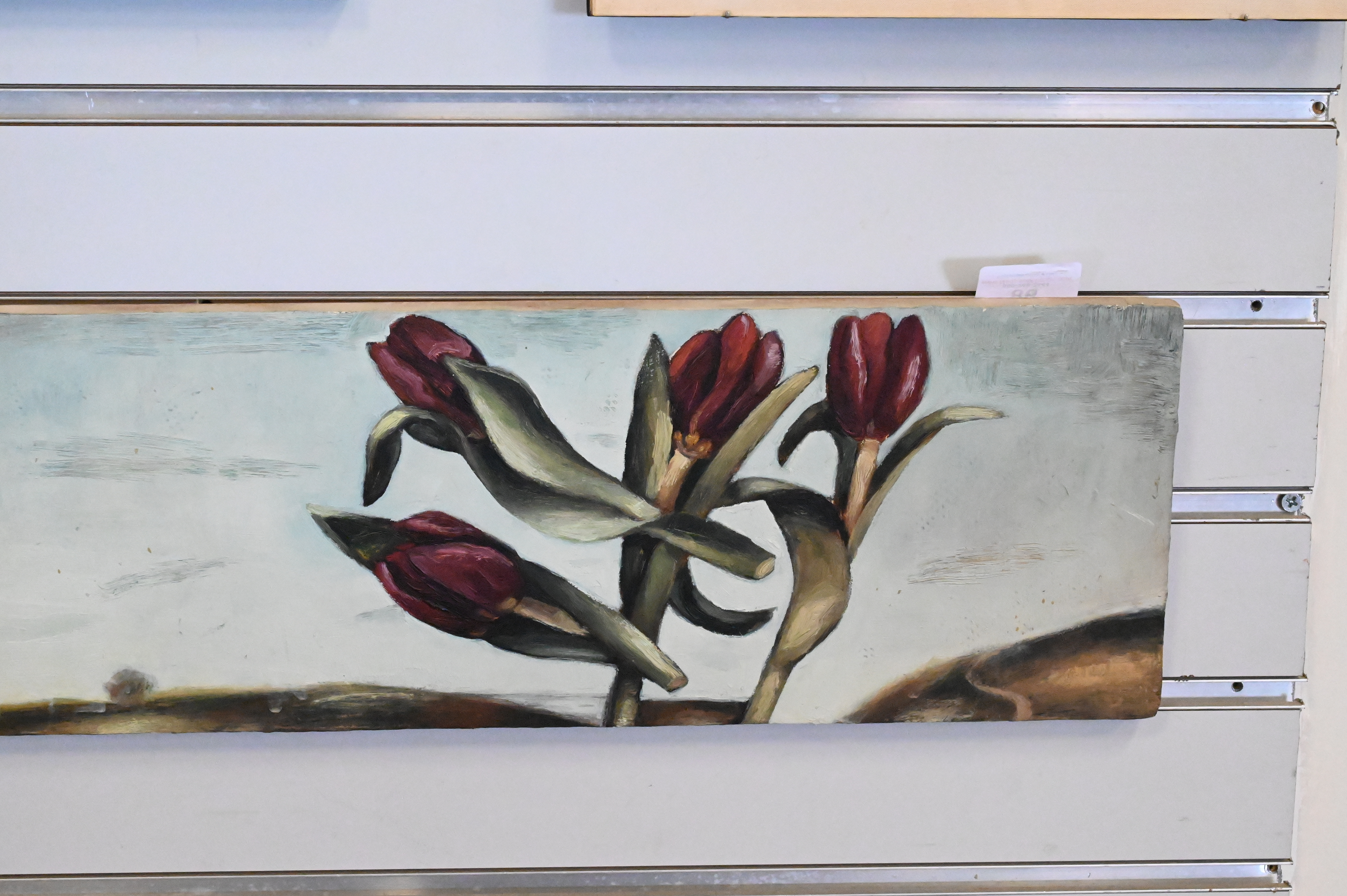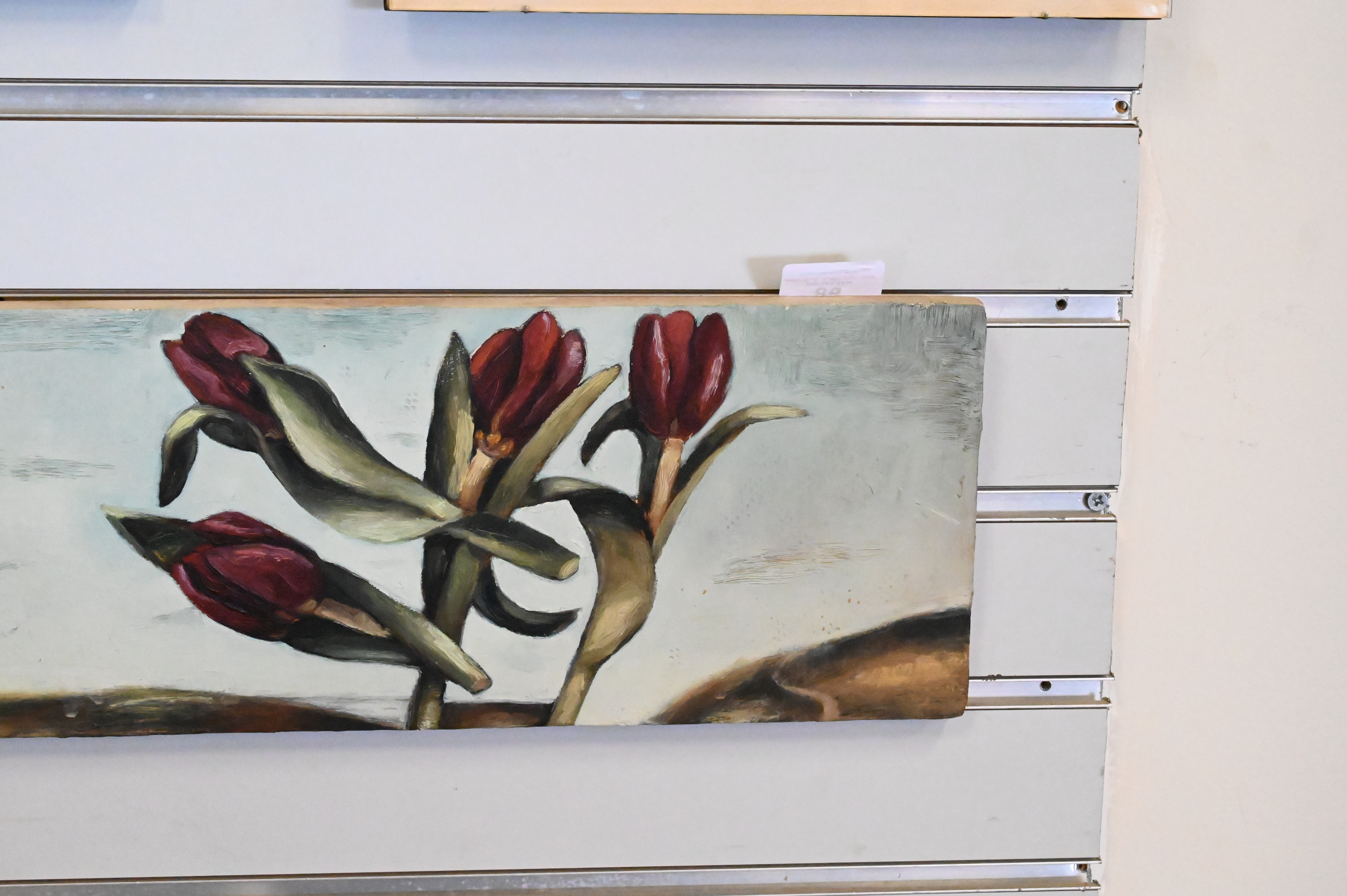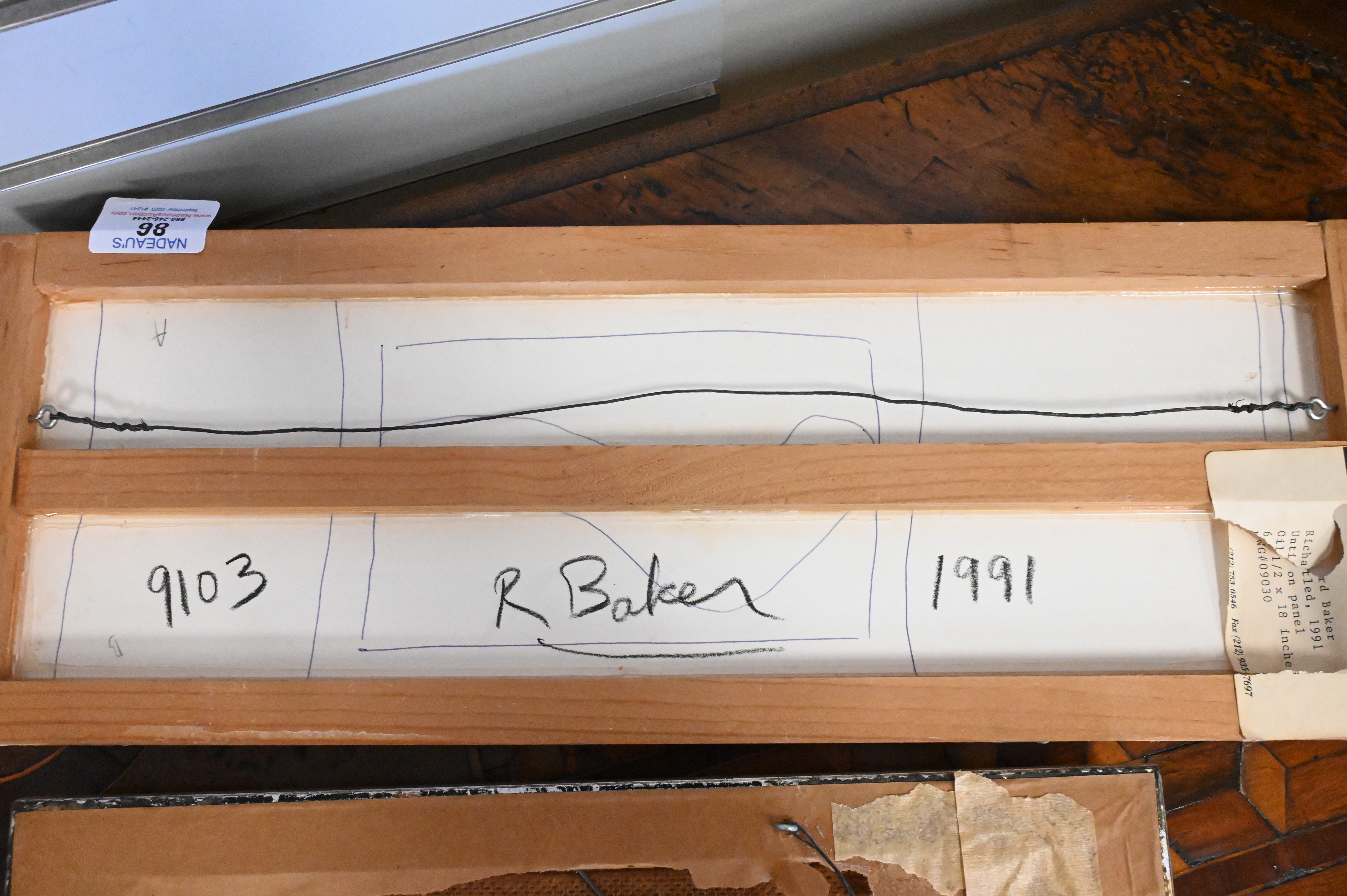 Richard Baker (American b. 1959) untitled oil on panel 1991, signed, dated and numbered 9103 on verso 6 1/2″ x 18″