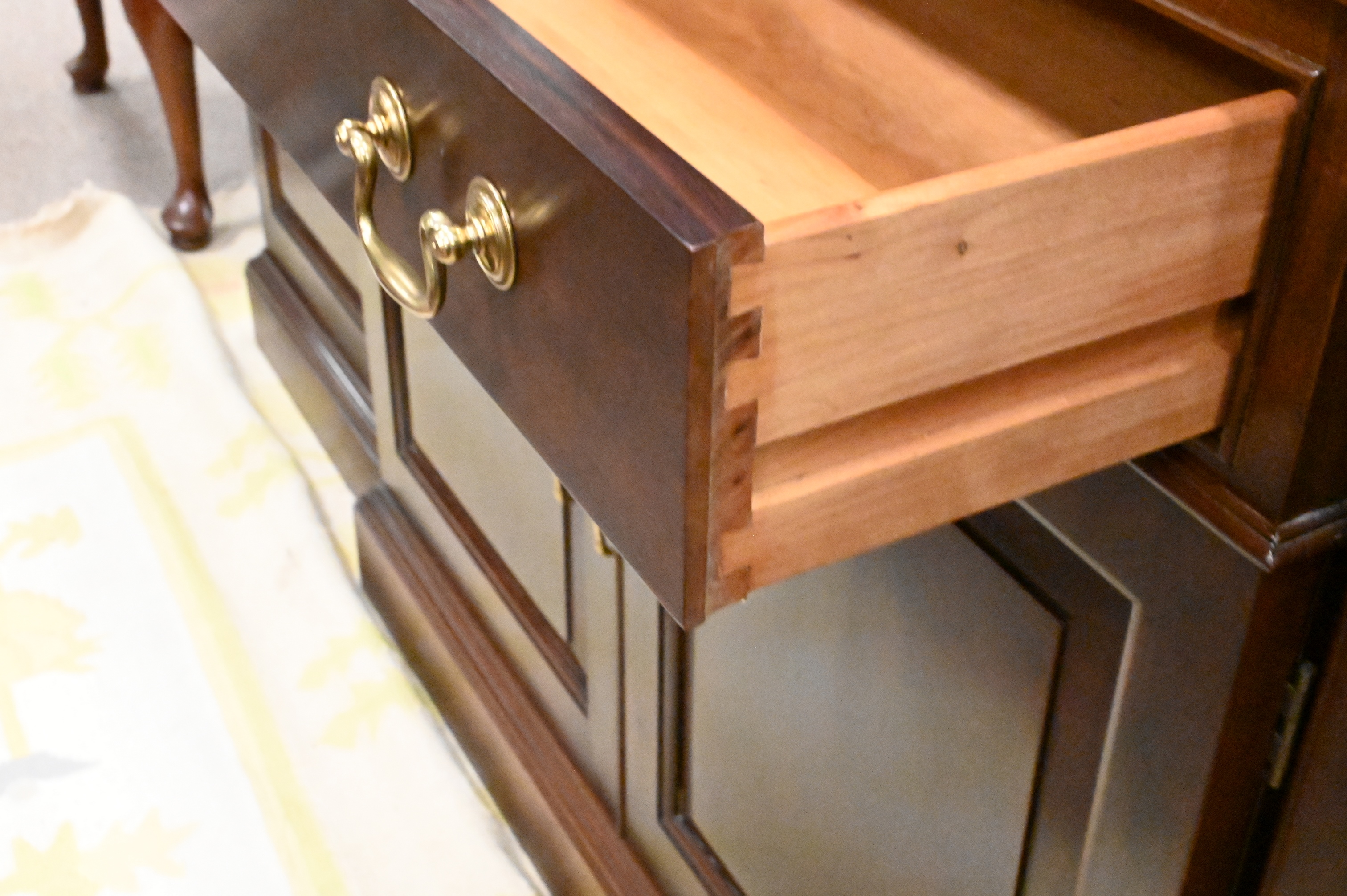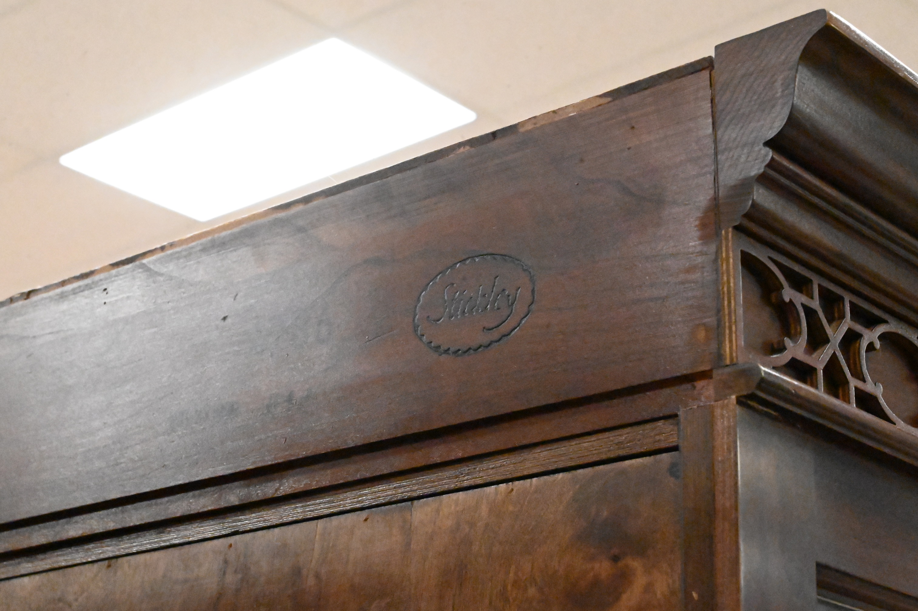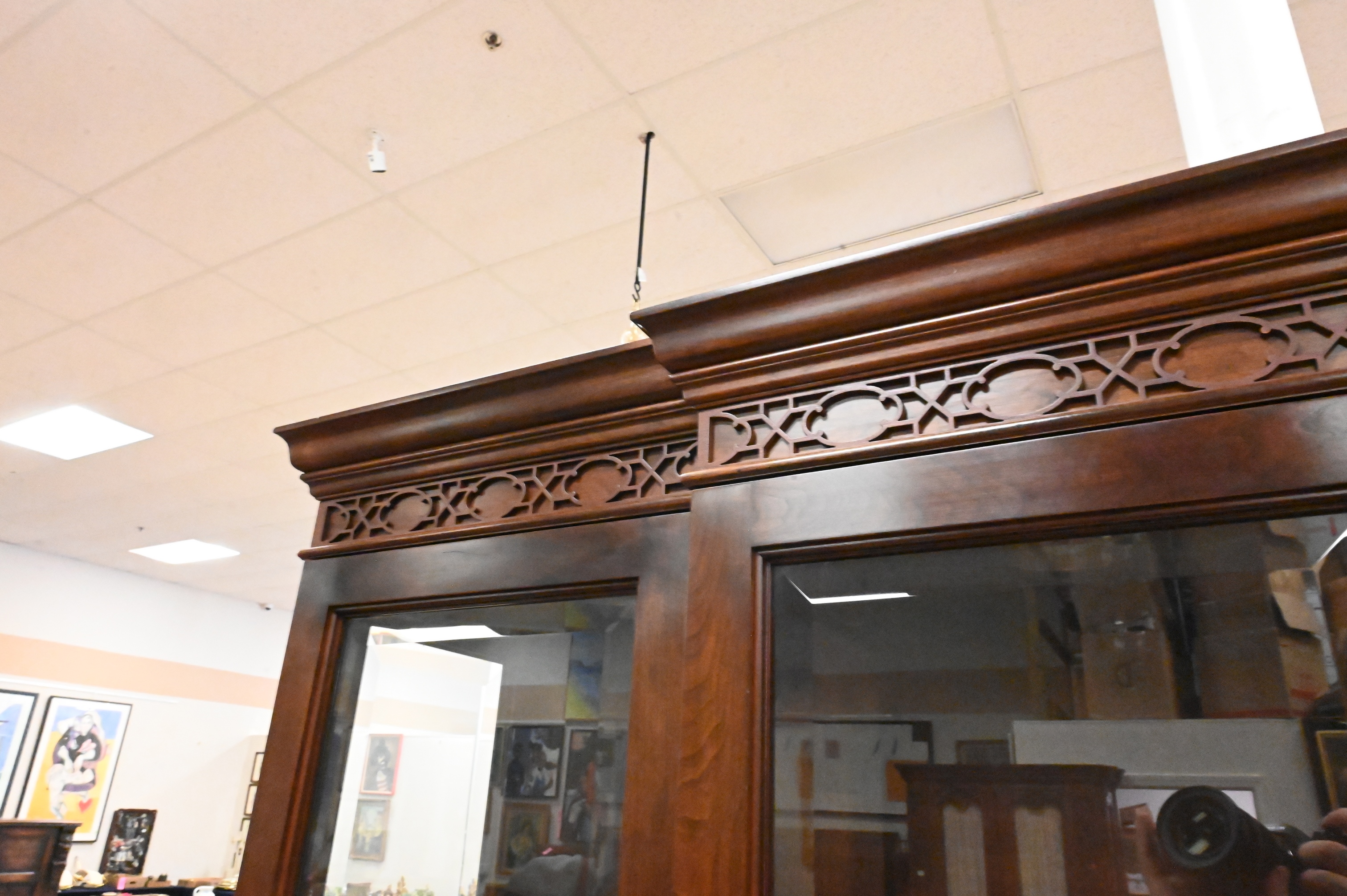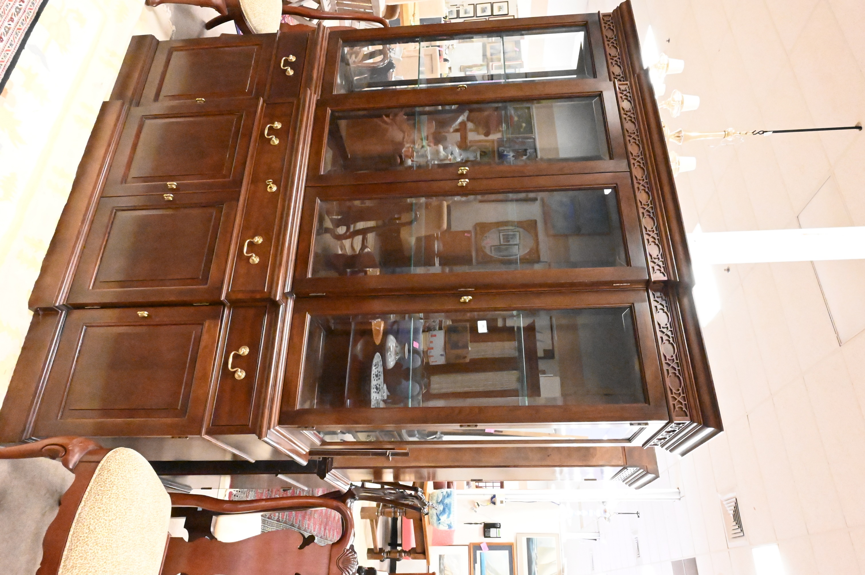 Lot 86: Stickley Mahogany Breakfront in Two Parts with Glass Shelves