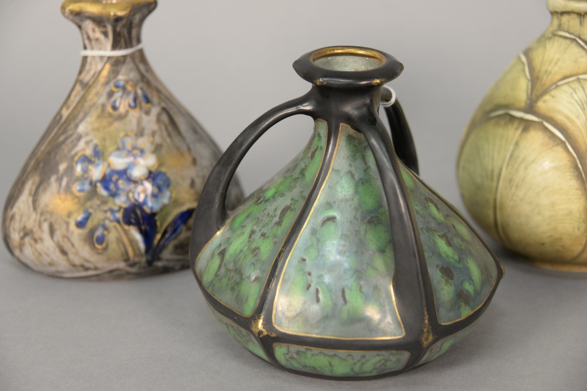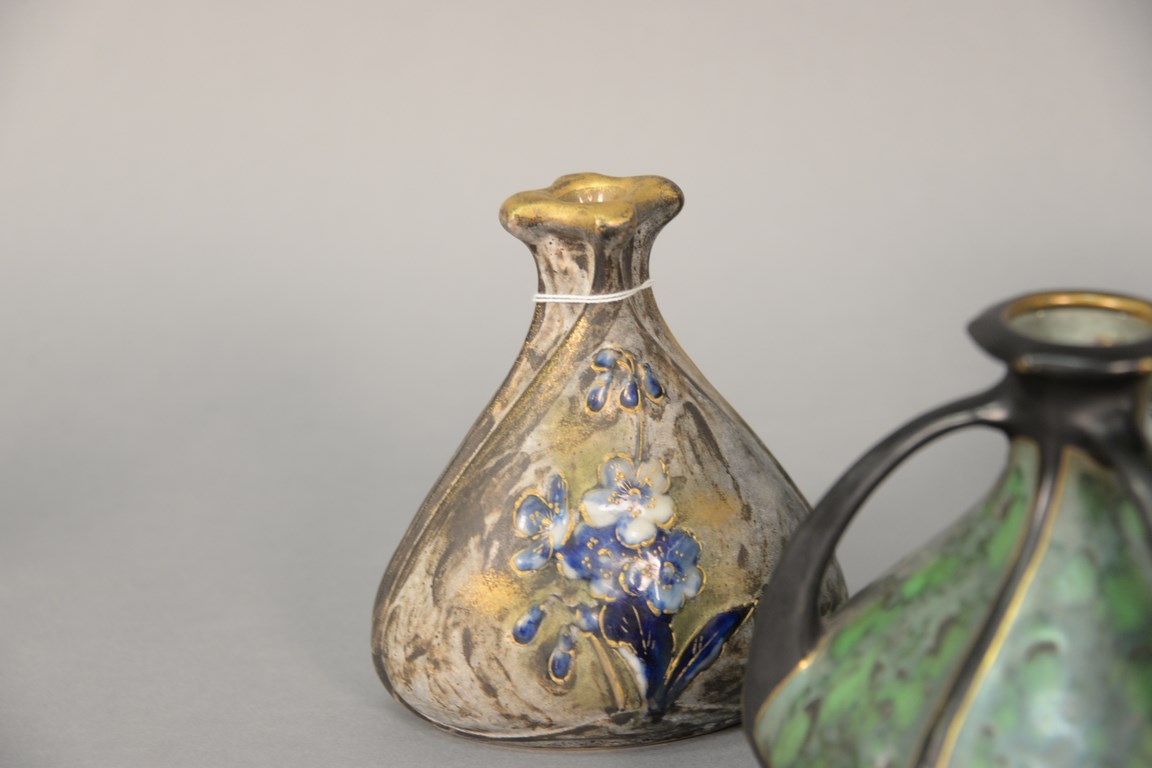 Lot 86: Three Teplitz vases, two are Turn Teplitz and one Stellmacher Teplitz, ht. 5 1/2 in. to 6 1/2 in.