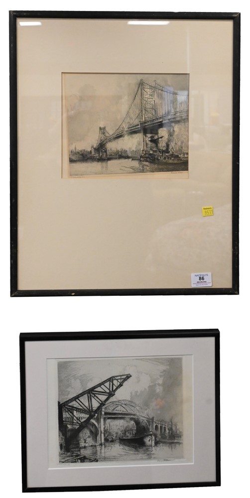 Lot 86: Two Louis Orr (American, 1879 – 1961) Etchings, to include “Cleveland”, 7 1/2″ x 9 1/4″; along with “Philadelphia”, 7 1/2″ x 9 1/4″;…