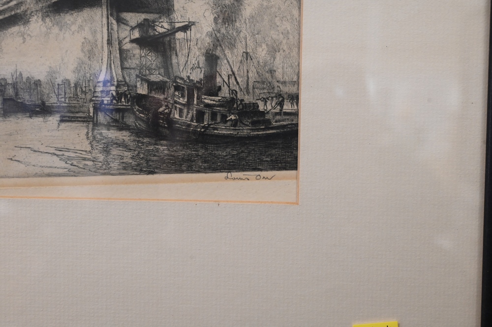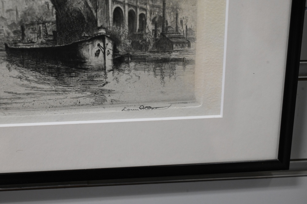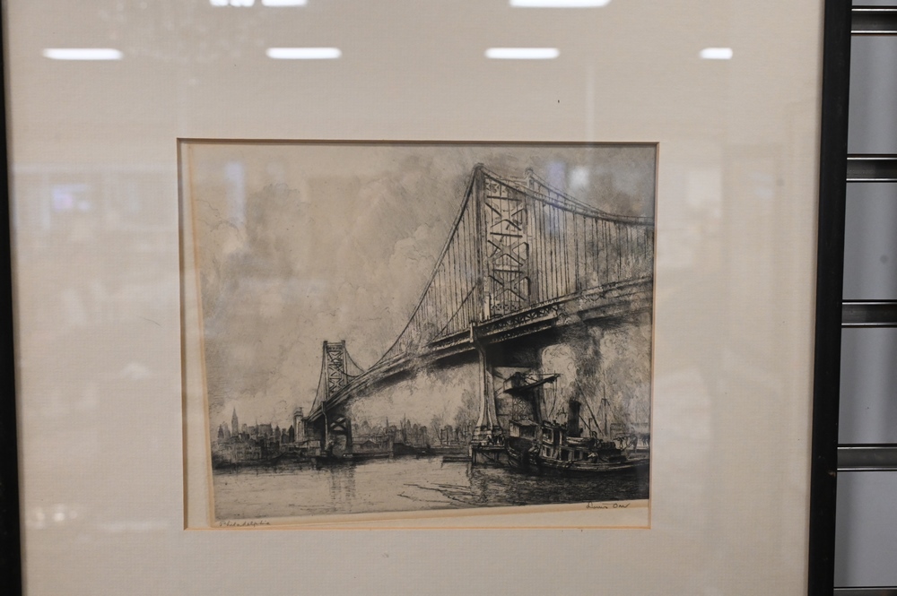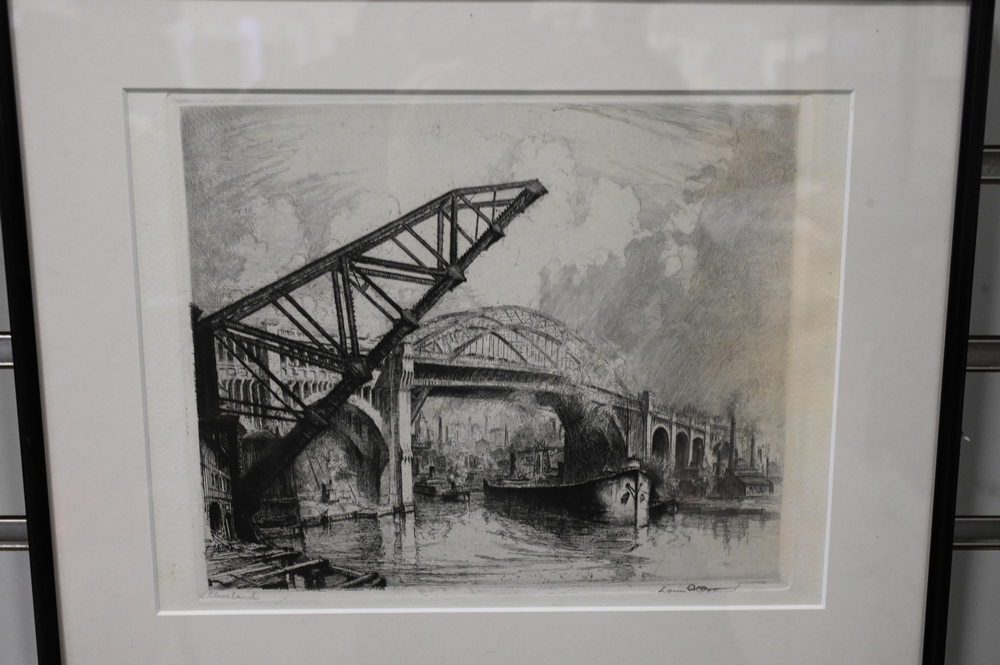 Two Louis Orr (American, 1879 – 1961) Etchings, to include “Cleveland”, 7 1/2″ x 9 1/4″; along with “Philadelphia”, 7 1/2″ x 9 1/4″; both signed lower left and dated lower left in pencil. Provenance: From the Robert Circiello Collection, West Hartford, Connecticut.