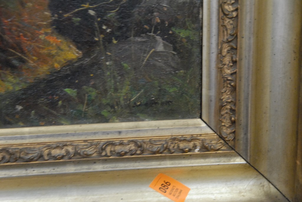 Lot 86: Two piece lot to include William H. Weisman 1840-1922, WOODED PATH oil on canvas signed lower right W. H. Weisman, 14 1/2 x 17 1/…