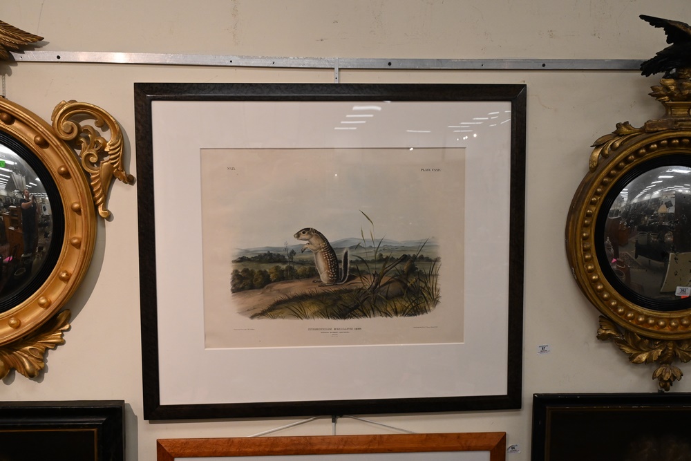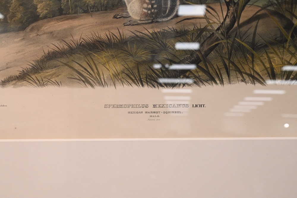 Lot 87: After John James Audubon American, 1785 – 1851 Mexican Marmot – Squirrel plate CXXIV large folio lithograph with hand coloring on paper published by J.T. Bowen, Philadelphia, 1847 sight size 20 1/2 x 26 1/2 inches