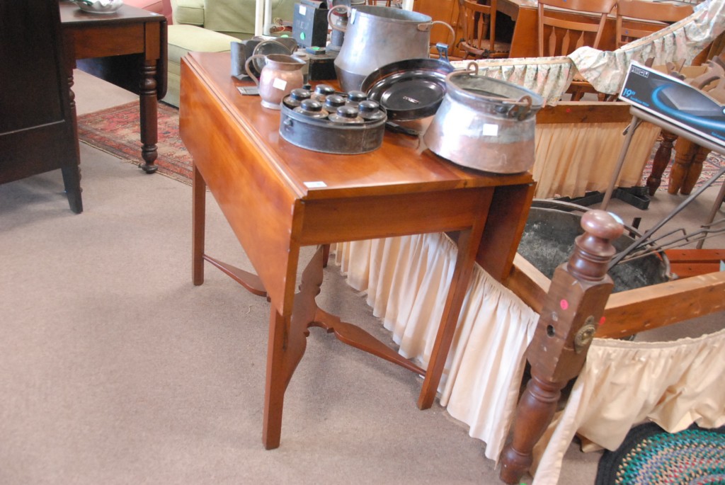 Chippendale cherry drop leaf table with stretcher base and drawer, circa 1780.