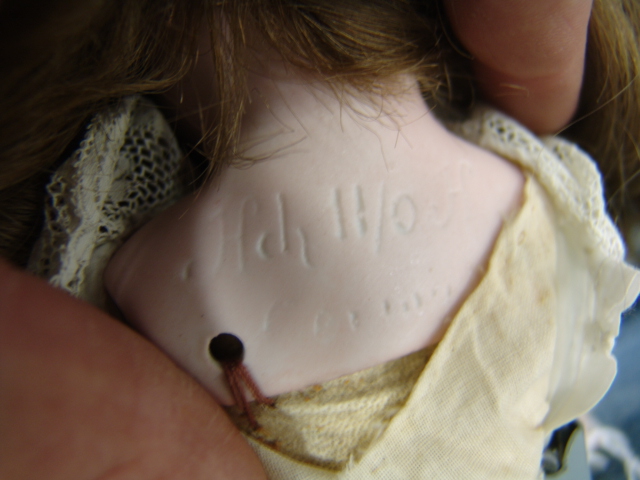 Doll, Hardwerck shoulderhead on kid body, bisque hands, open mouth