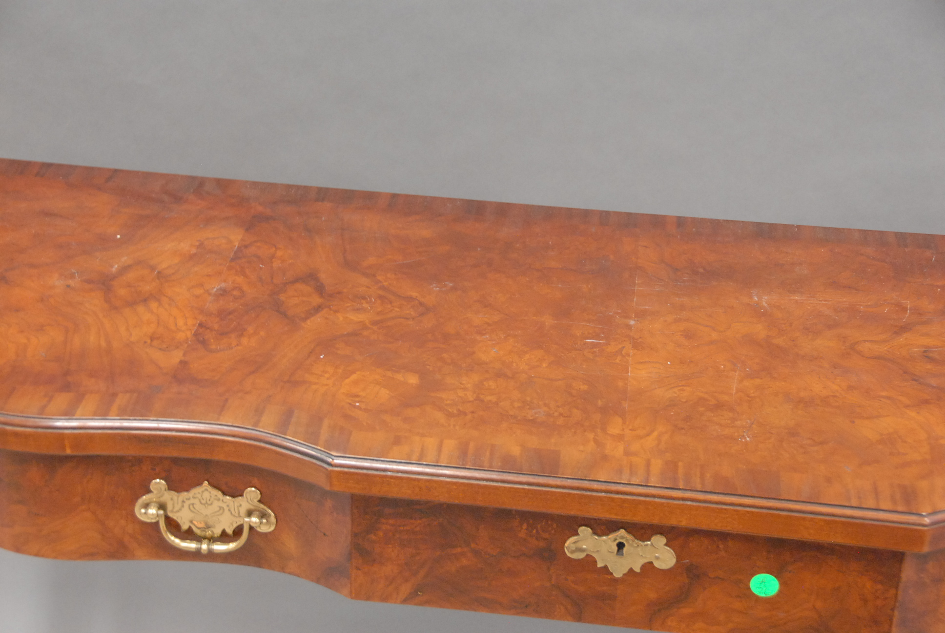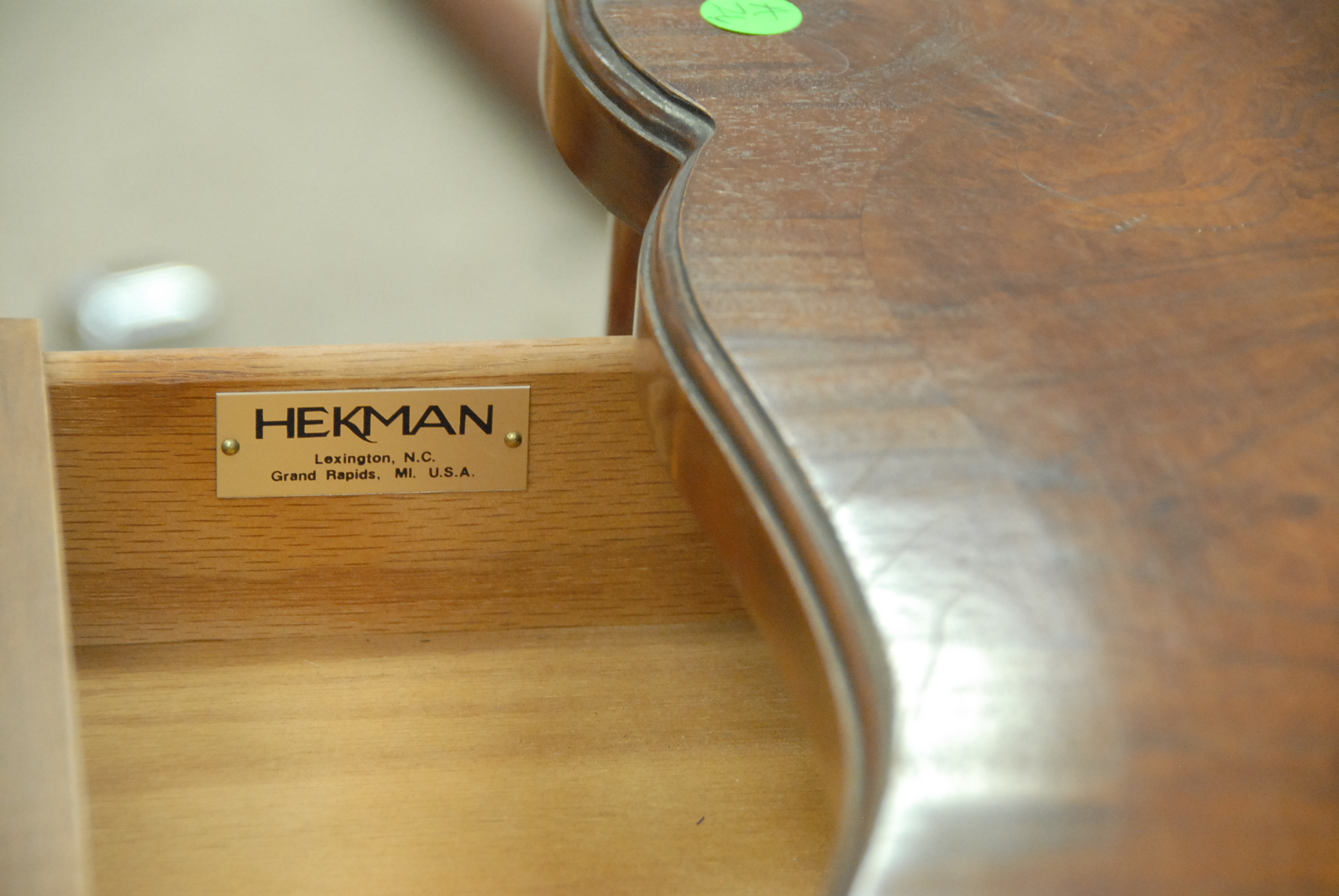 Hekman Burl wood Queen Anne style hall table with a drawer.