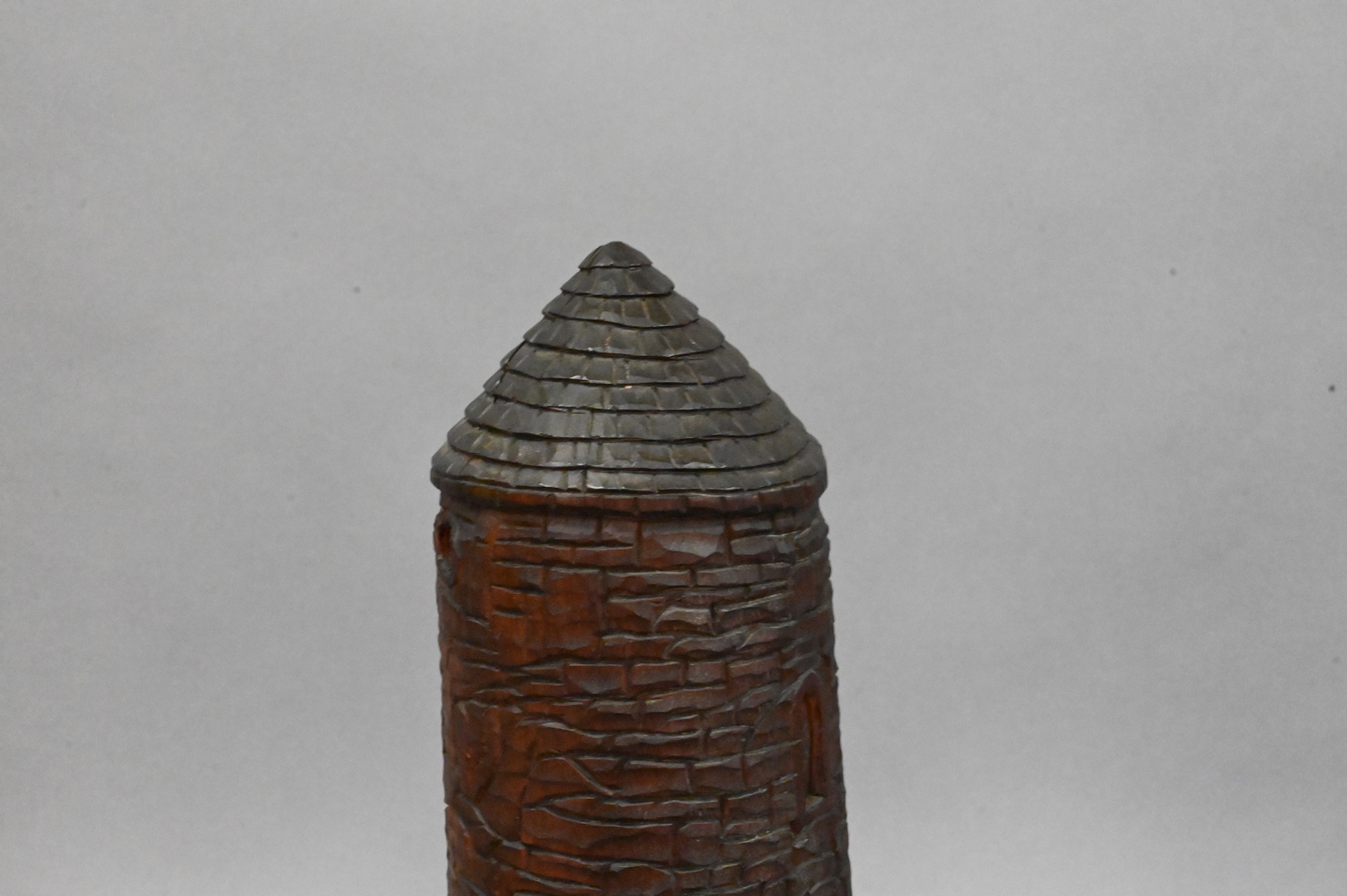 Mark Fenwick Wood Carved Sculpture of a Castle, artist signed, height 25 inches.