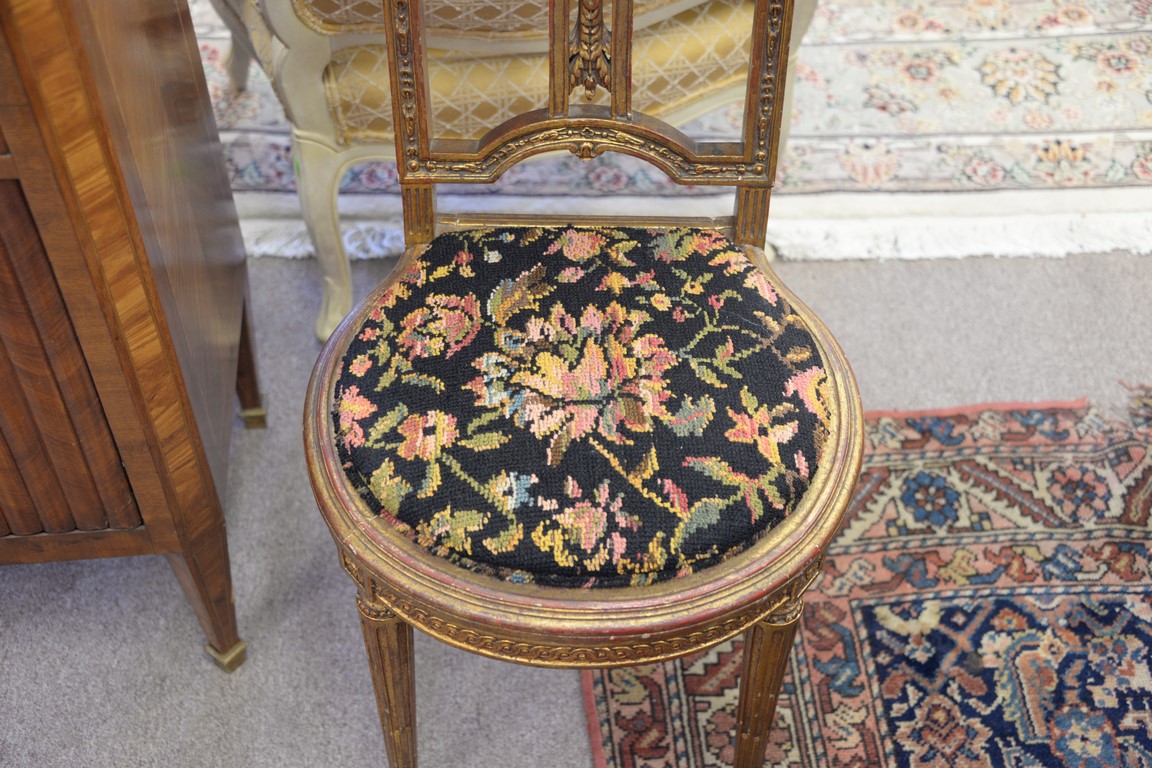 Pair of Louis XVI gilt side chair.