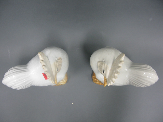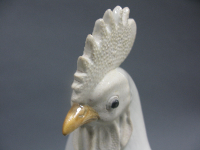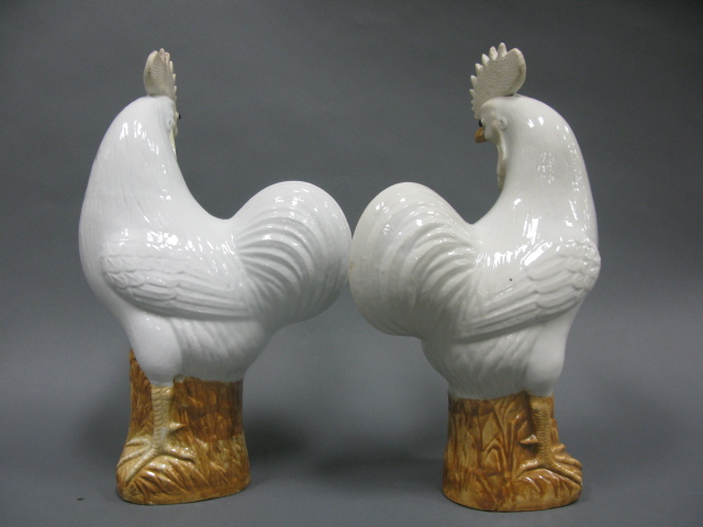 Pair of Oriental porcelain roosters having a white glazed body, salt glazed head and light brown glazed legs w/seal mark on bottom.