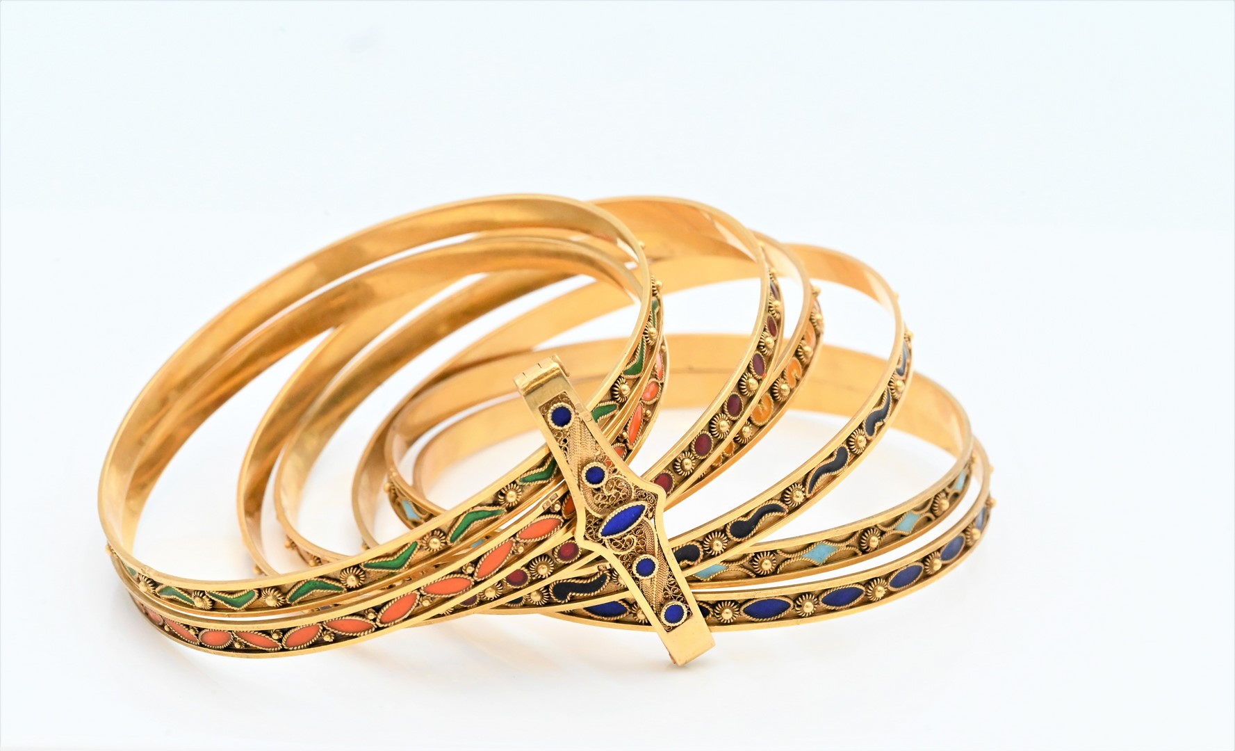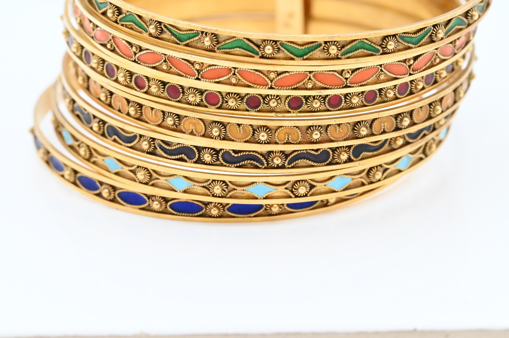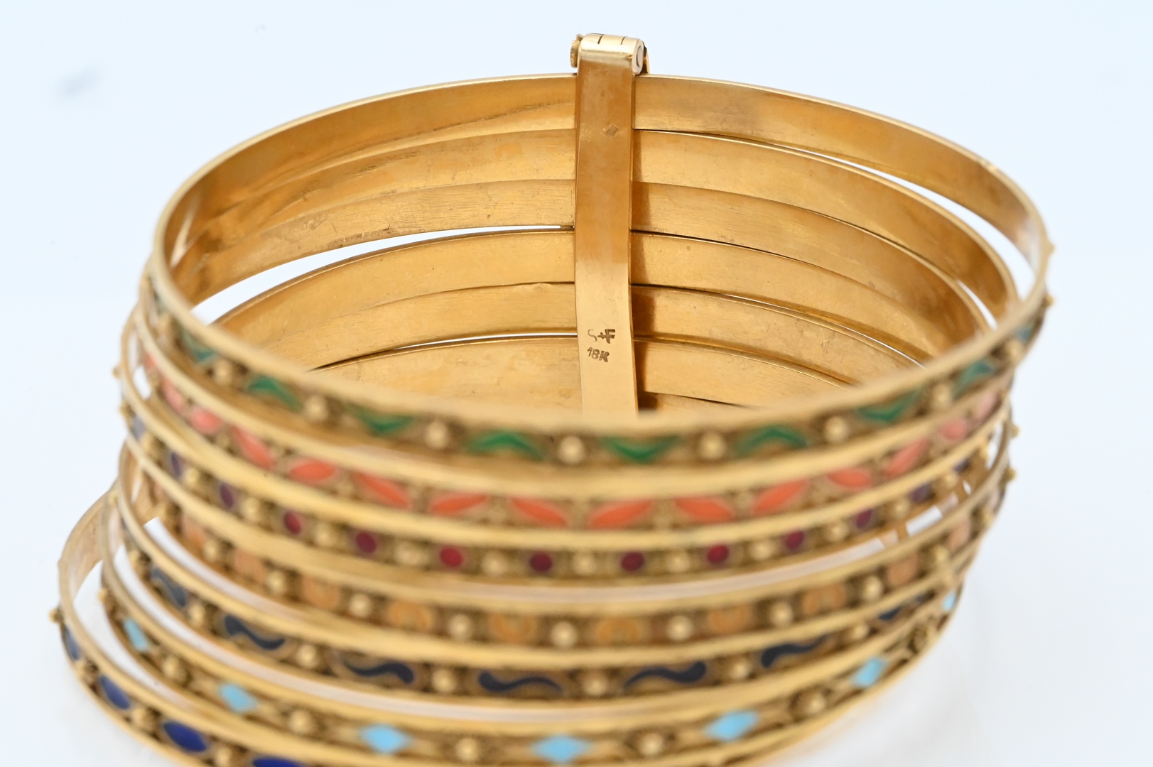 Set of Seven 18 Karat Yellow Gold Bangle Bracelet
